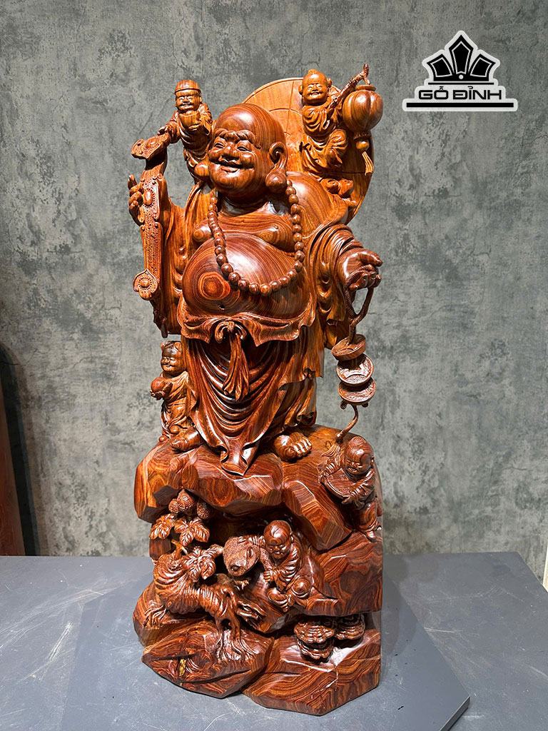 Tượng Phật Di Lặc Ngũ Phúc Gỗ Cẩm Cao 90 Ngang 41 Sâu 22 (cm) 41kg