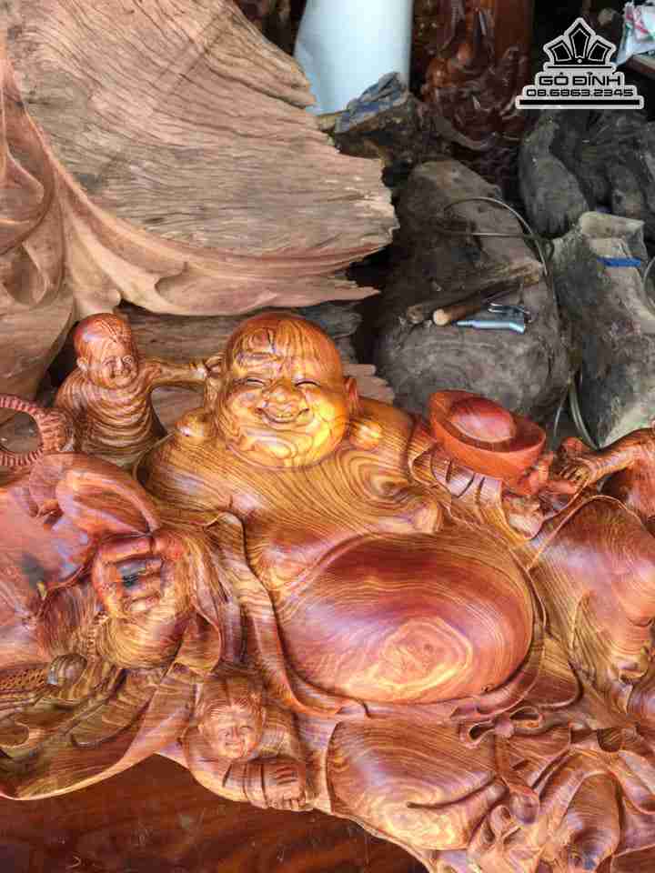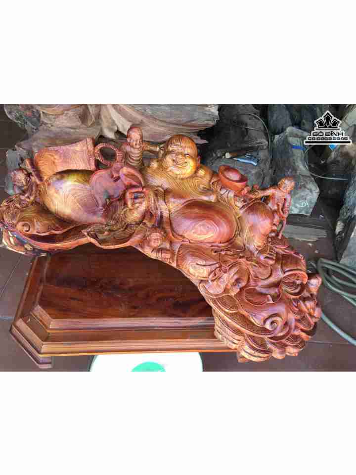 Tượng Phật Di Lặc Ngũ Phúc Gỗ Cẩm Lai Rộng 80 Sâu 25 Cao 36 (cm)