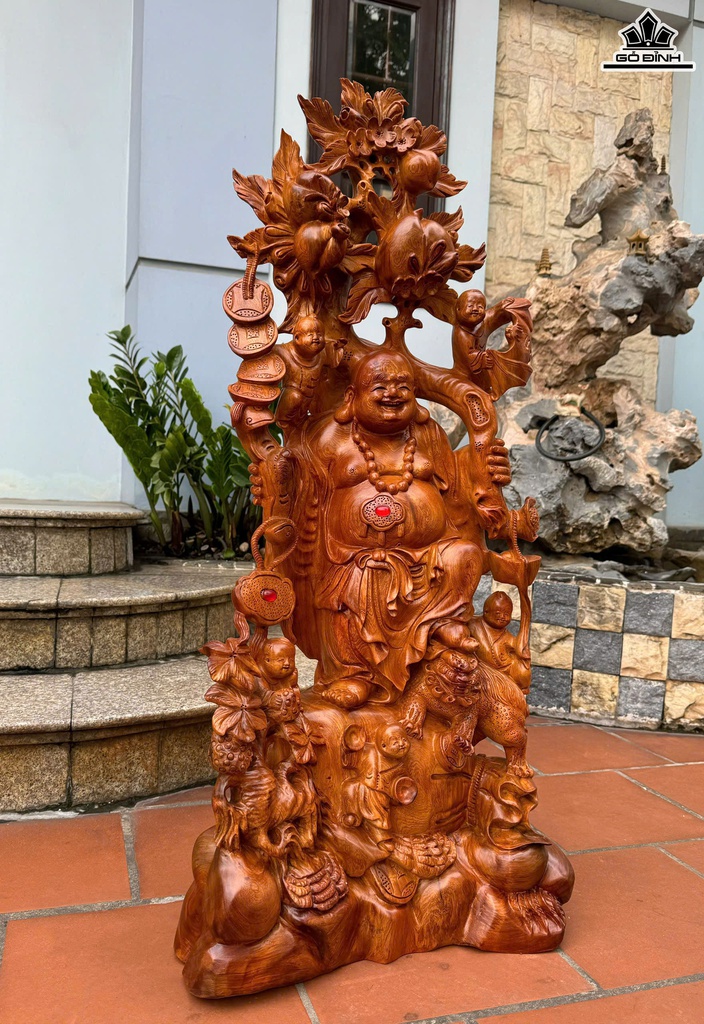 Tượng Phật Di Lặc Ngũ Phúc Gỗ Hương Cao 100 Ngang 46 Sâu 28 (cm)