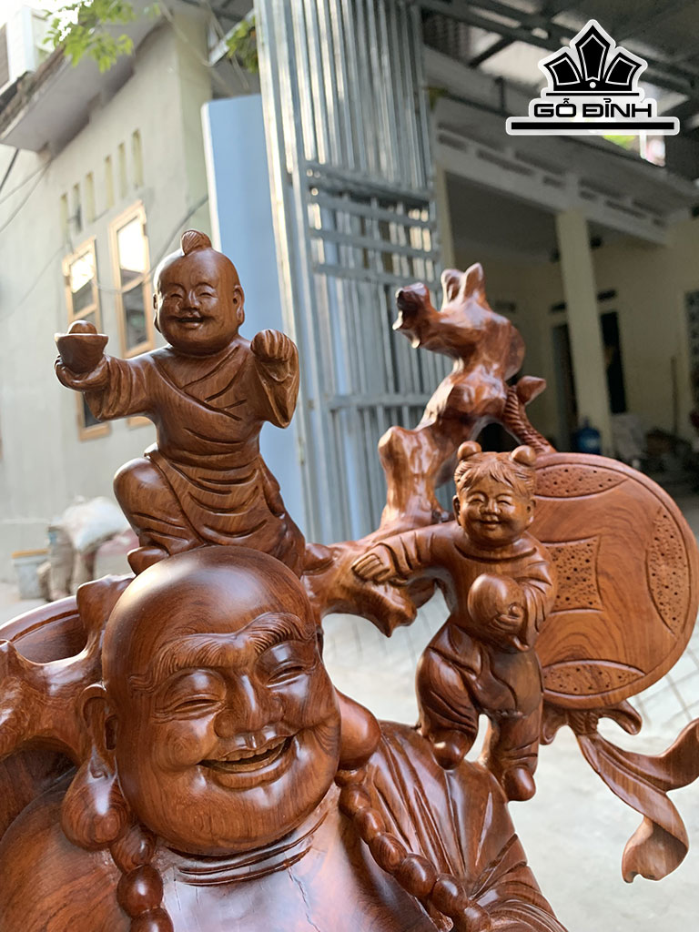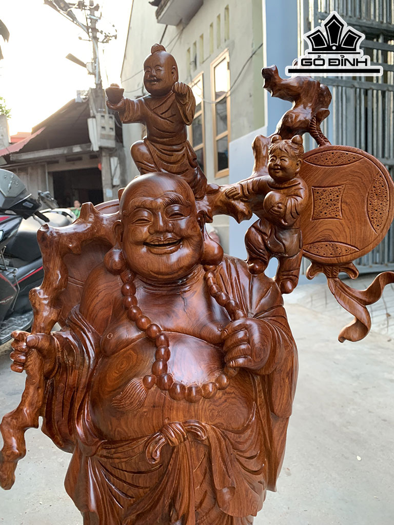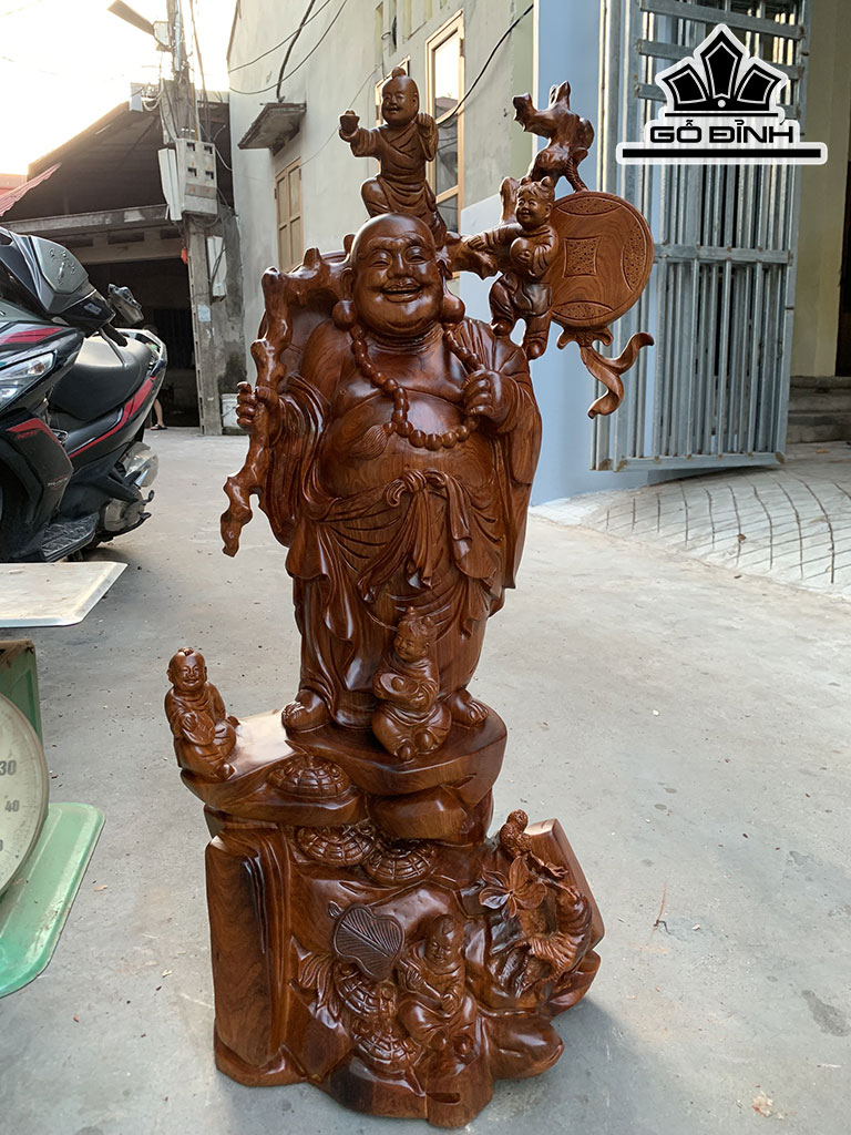 Tượng Phật Di Lặc Ngũ Phúc Gỗ Hương Cao 100 Ngang 46 Sâu 30 (cm)