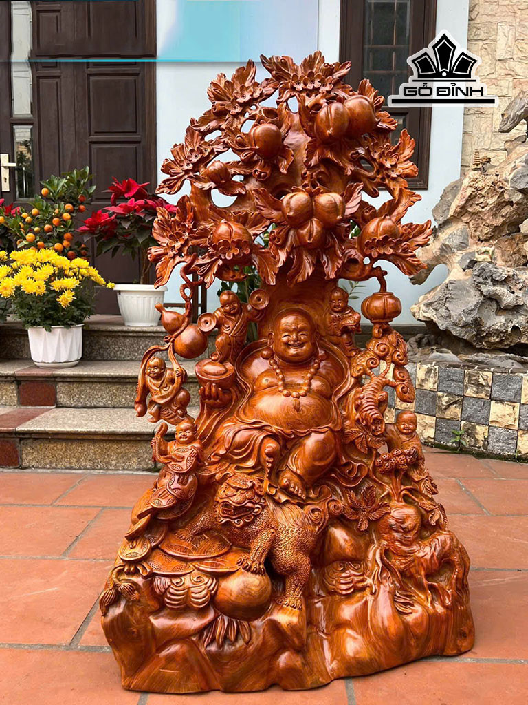 Tượng Phật Di Lặc Ngũ Phúc Gỗ Hương Cao 102 Ngang 62 Sâu 36 (cm)