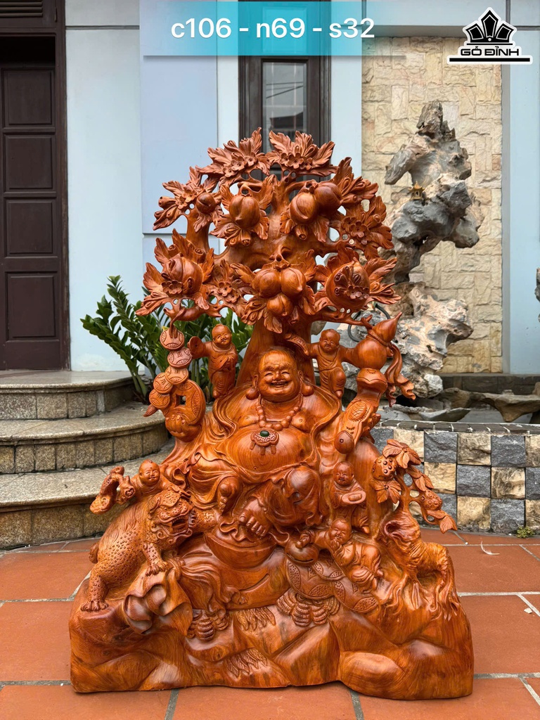 Tượng Phật Di Lặc Ngũ Phúc Gỗ Hương Cao 106 Ngang 69 Sâu 32 (cm)