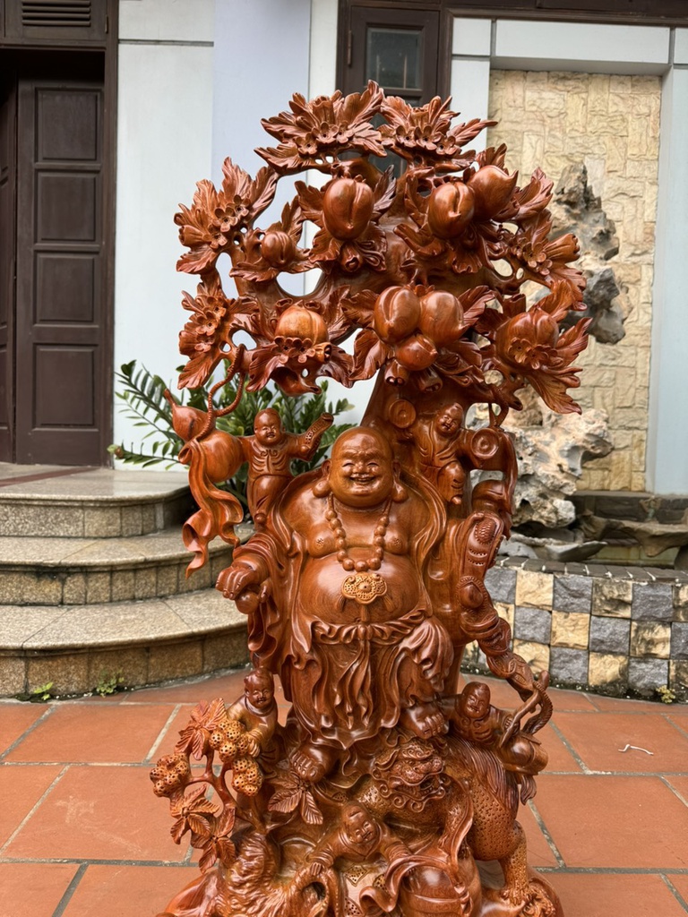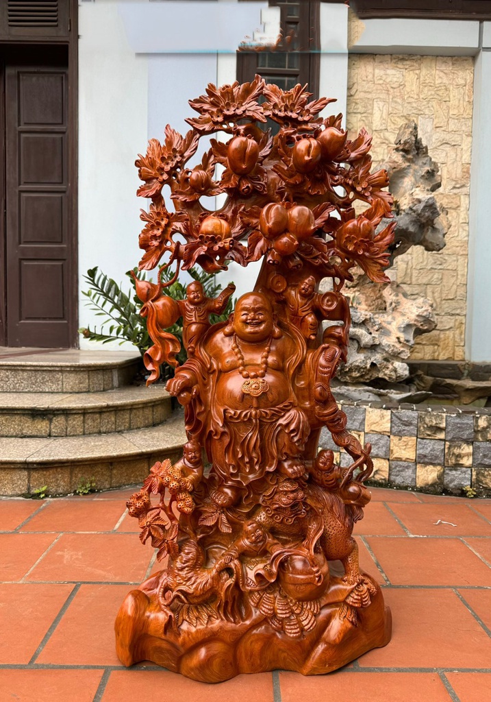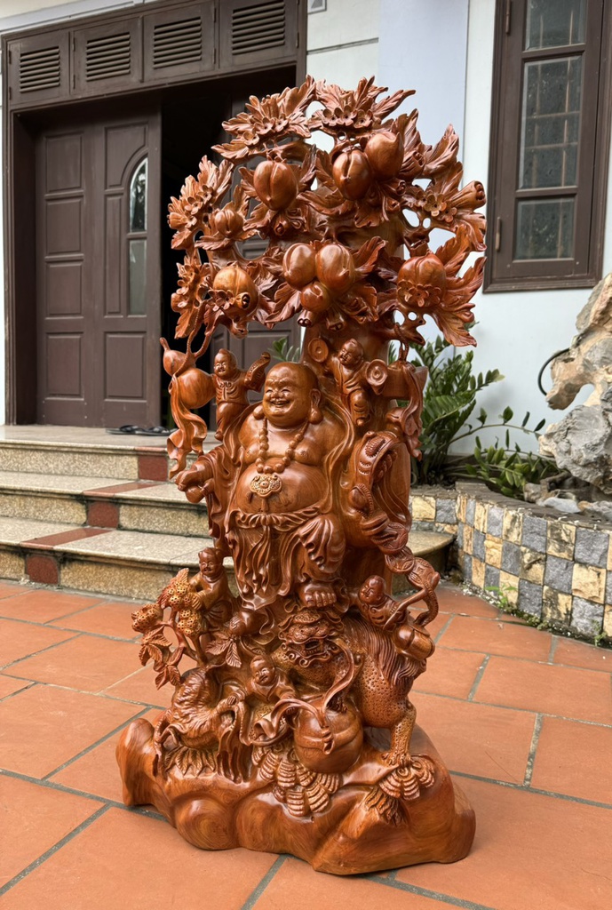 Tượng Phật Di Lặc Ngũ Phúc Gỗ Hương Cao 115 Ngang 55 Sâu 33 (cm)