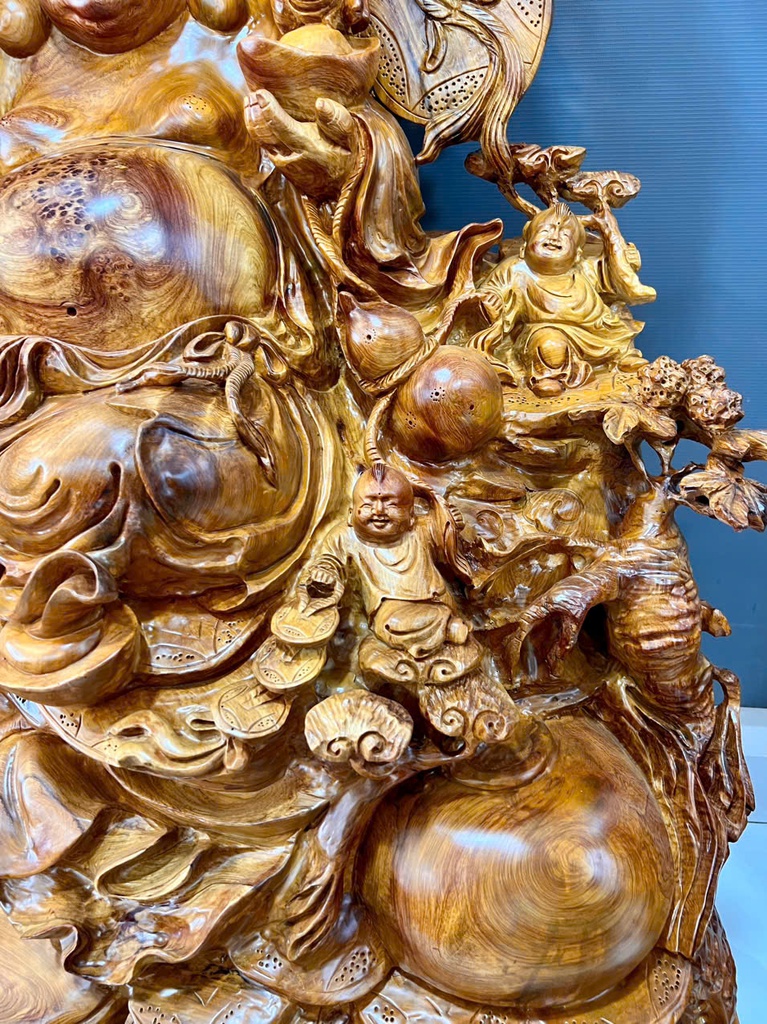 Tượng Phật Di Lặc Ngũ Phúc Gỗ Hương Cao 198 Ngang 100 Sâu 60 (cm)
