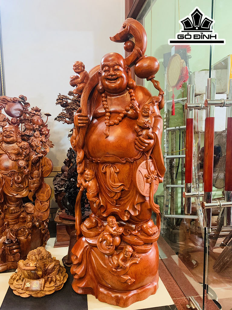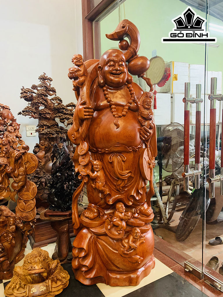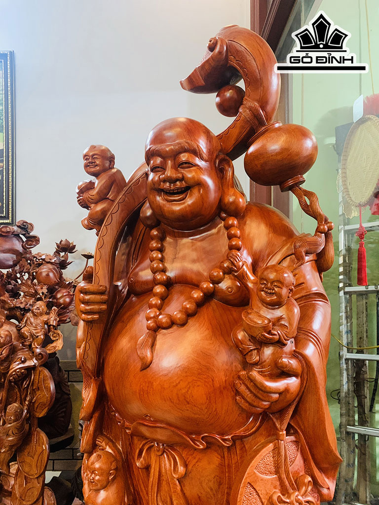 Tượng Phật Di Lặc Ngũ Phúc Gỗ Hương Cao 200 Ngang 70 Sâu 60 (cm)