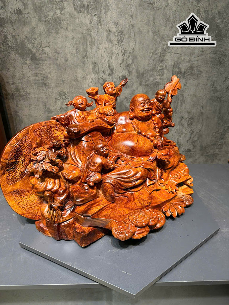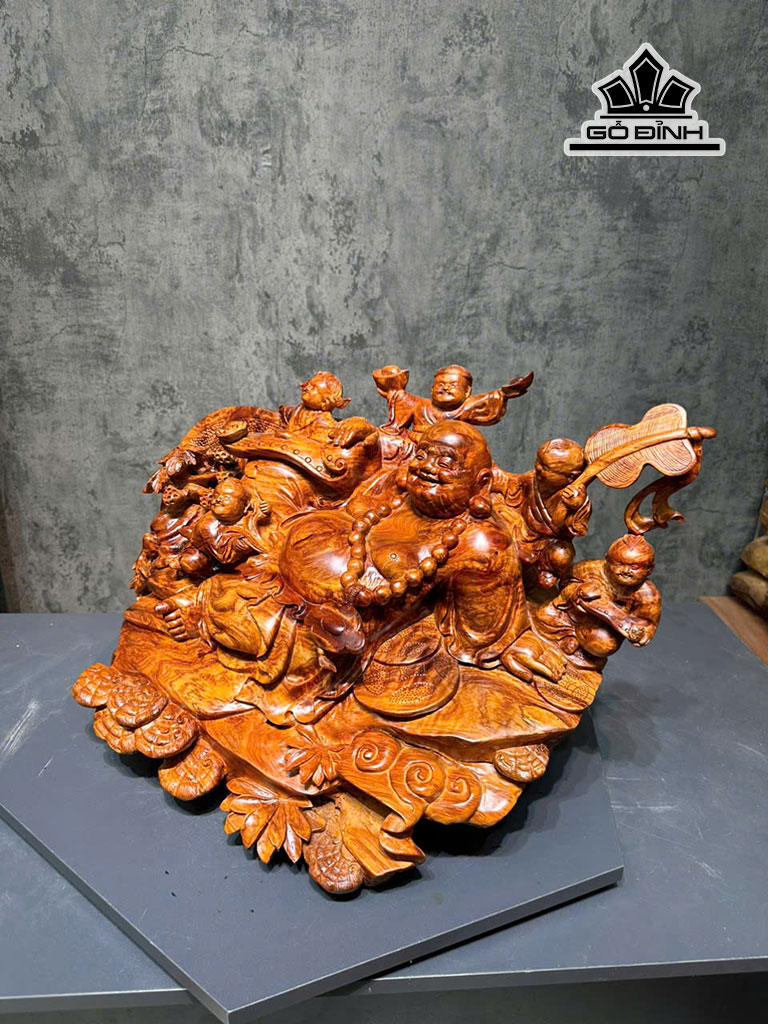 Tượng Phật Di Lặc Ngũ Phúc Gỗ Hương Cao 40 Ngang 68 Sâu 44 (cm)