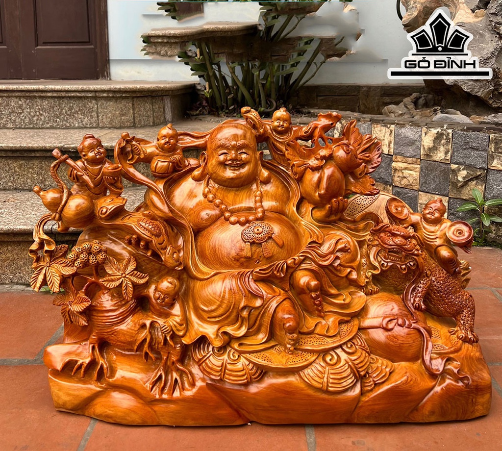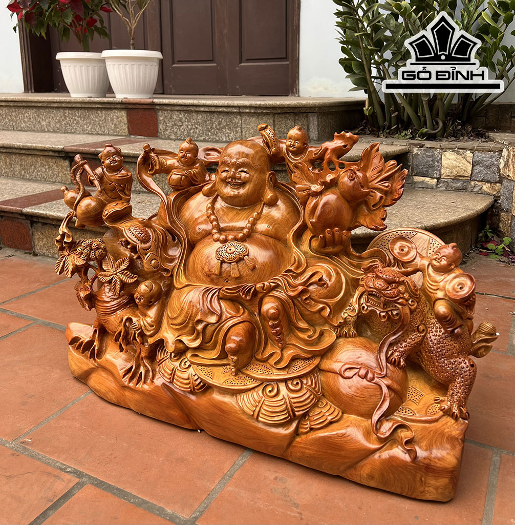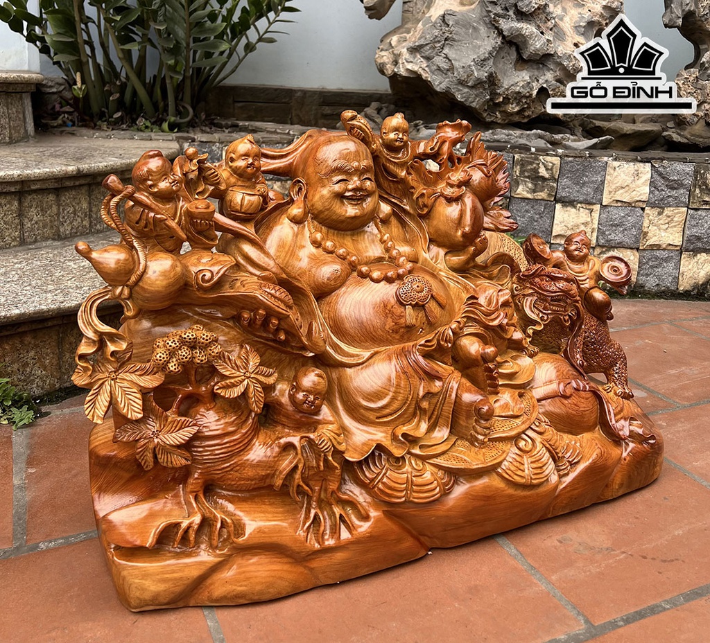 Tượng Phật Di Lặc Ngũ Phúc Gỗ Hương Cao 44 Ngang 70 Sâu 30 (cm)