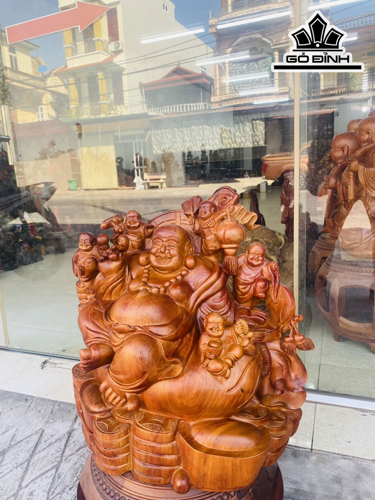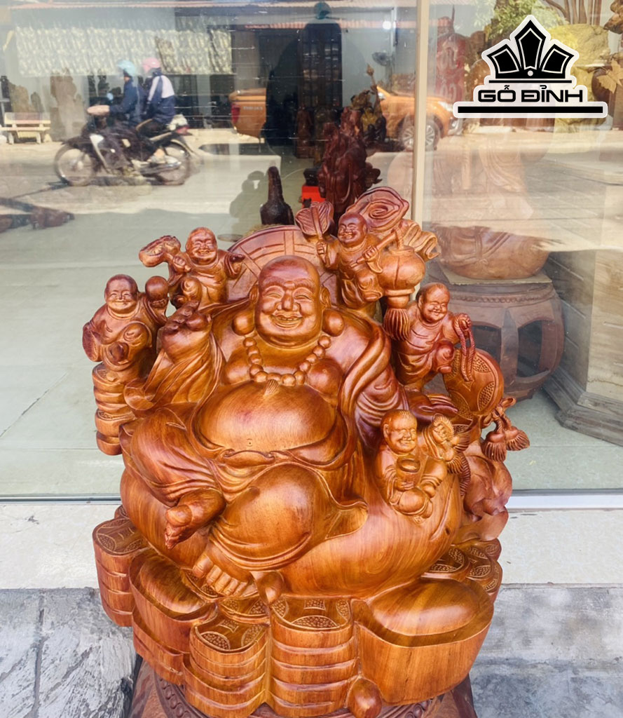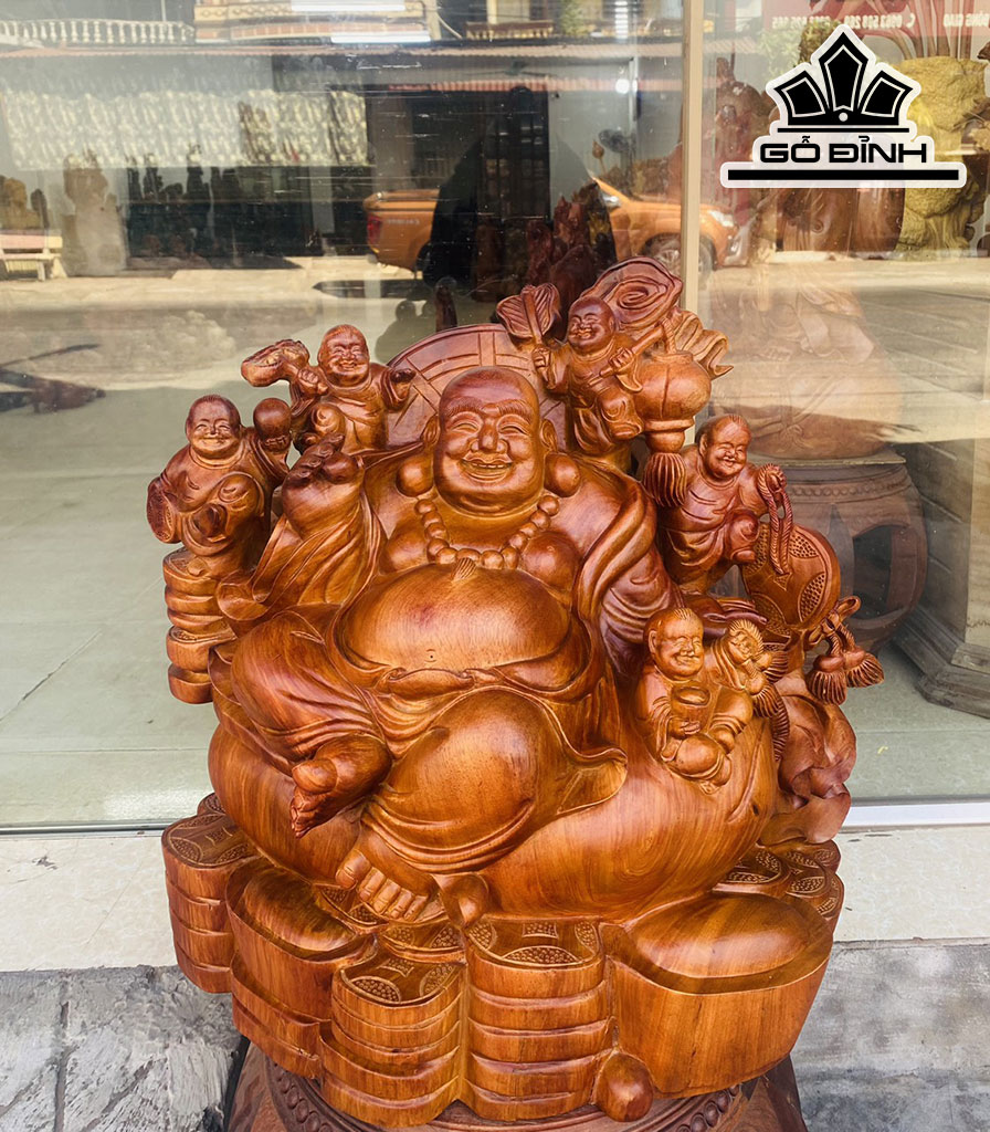 Tượng Phật Di Lặc Ngũ Phúc Gỗ Hương Cao 46 Ngang 48 Sâu 33 (cm)