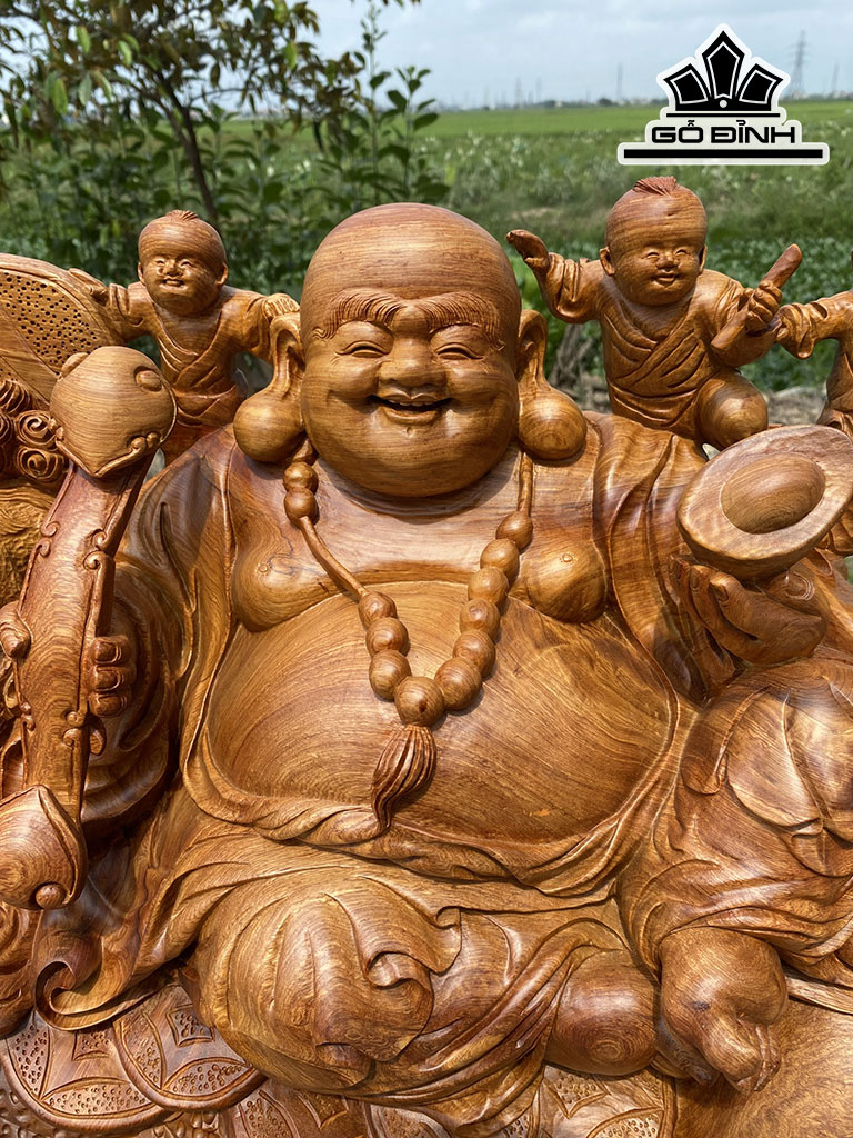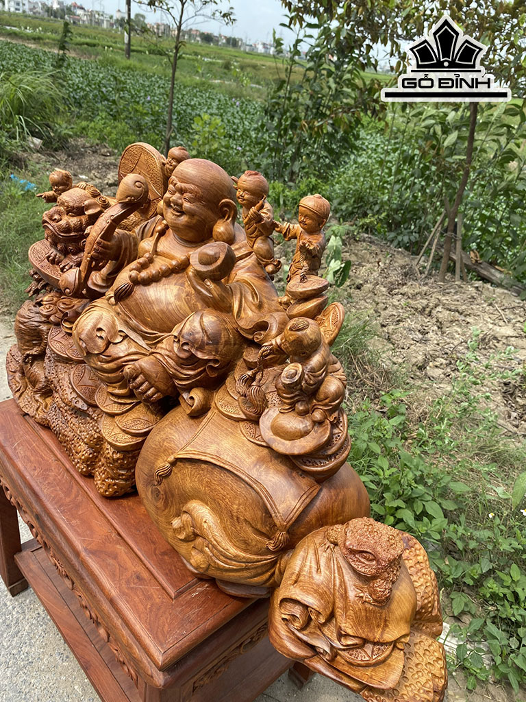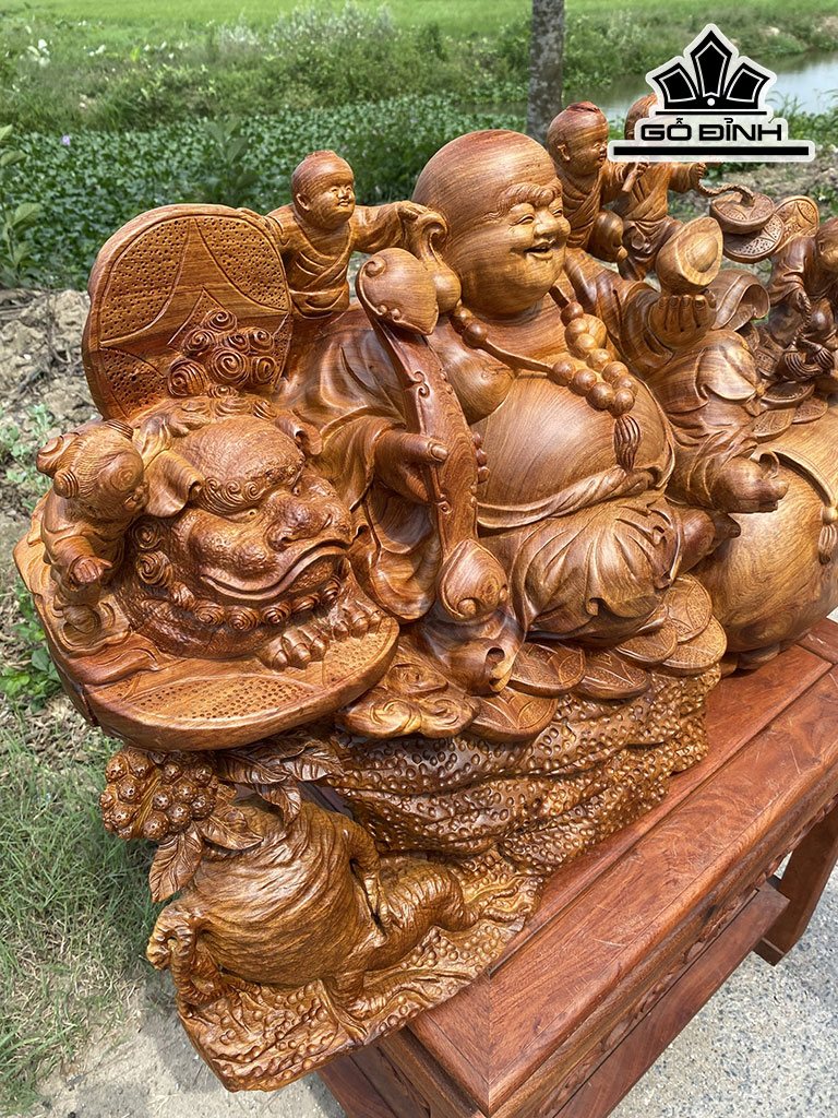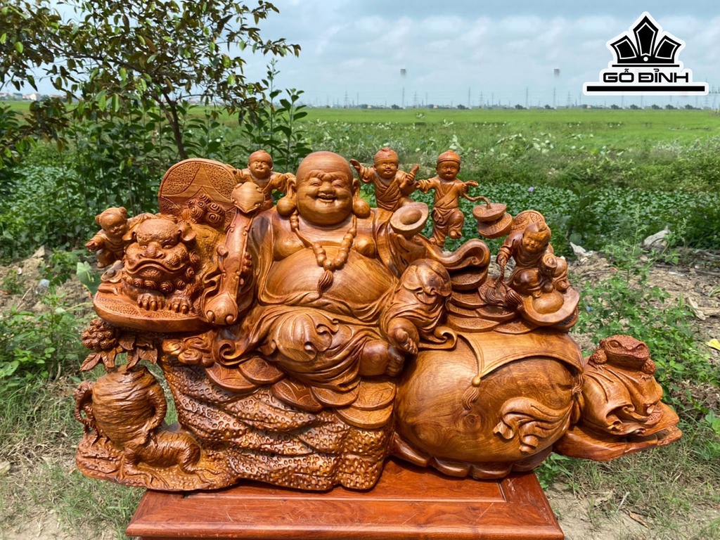 Tượng Phật Di Lặc Ngũ Phúc Gỗ Hương Cao 48 Ngang 96 Sâu 28 (cm)