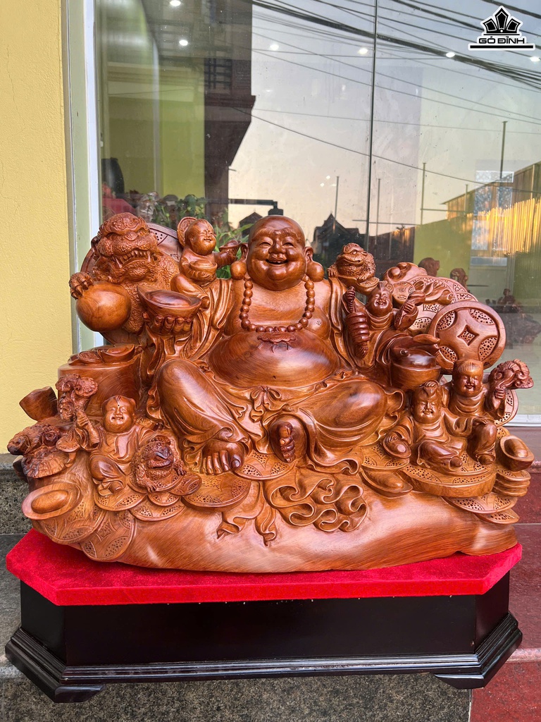 Tượng Phật Di Lặc Ngũ Phúc Gỗ Hương Cao 50 Ngang 72 Sâu 45 (cm)