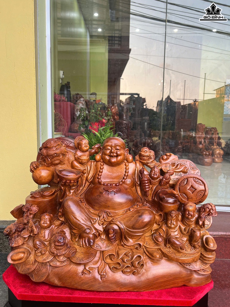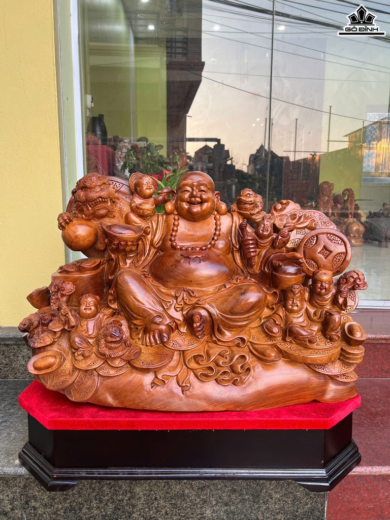 Tượng Phật Di Lặc Ngũ Phúc Gỗ Hương Cao 50 Ngang 72 Sâu 45 (cm)