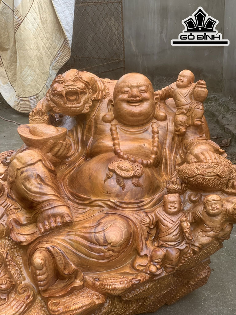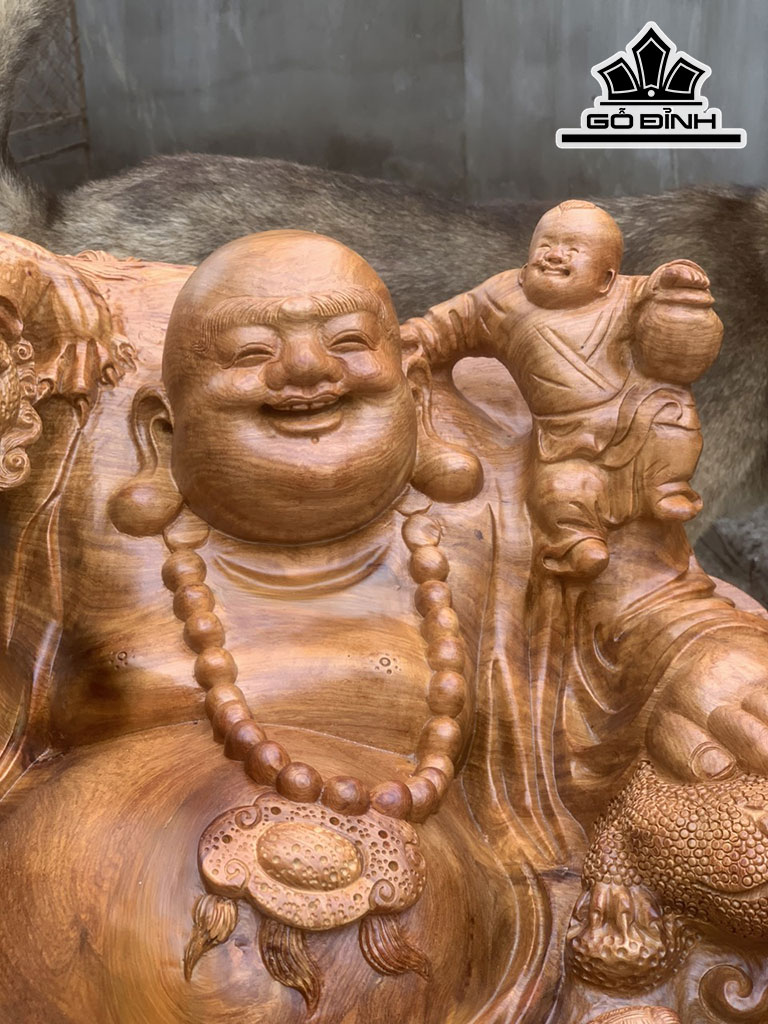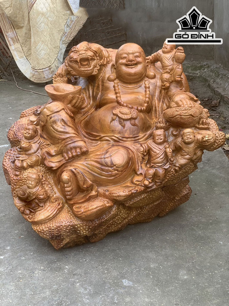Tượng Phật Di Lặc Ngũ Phúc Gỗ Hương Cao 60 Ngang 80 Sâu 75 (cm)
