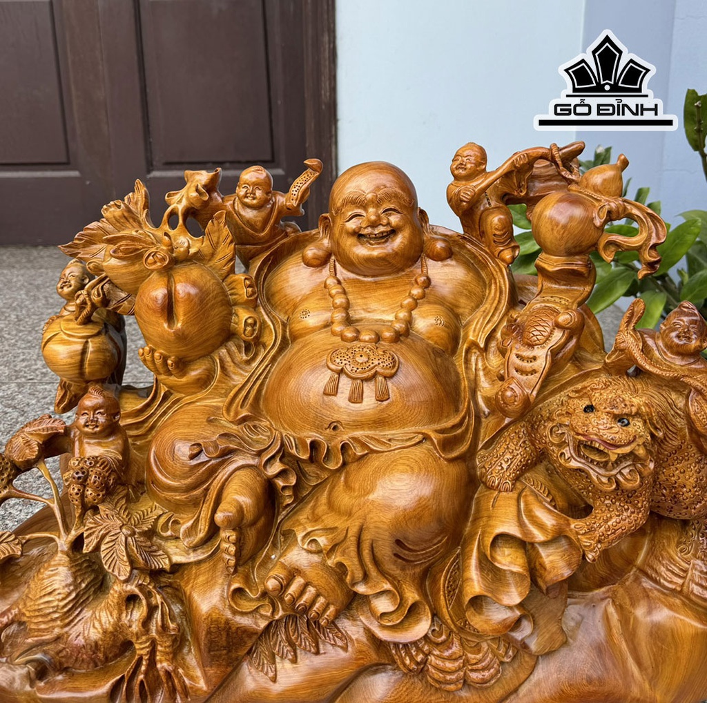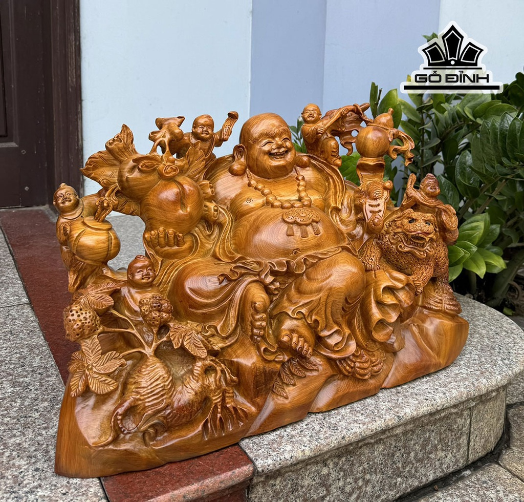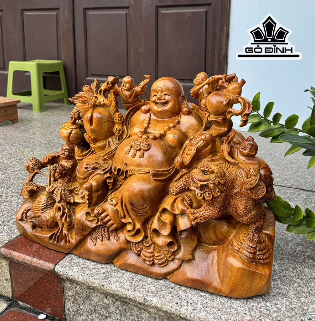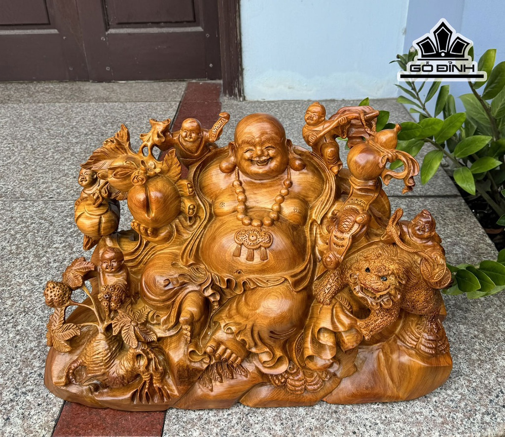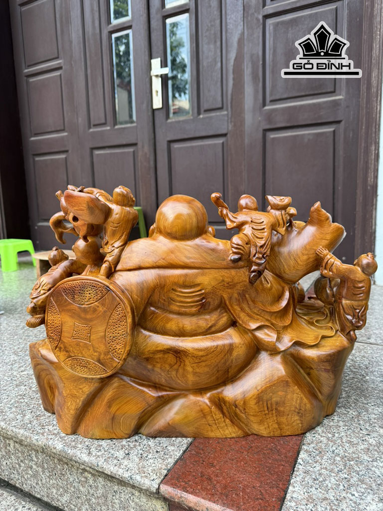 Tượng Phật Di Lặc Ngũ Phúc Gỗ Hương Cao 61 Ngang 40 Sâu 28 (cm)