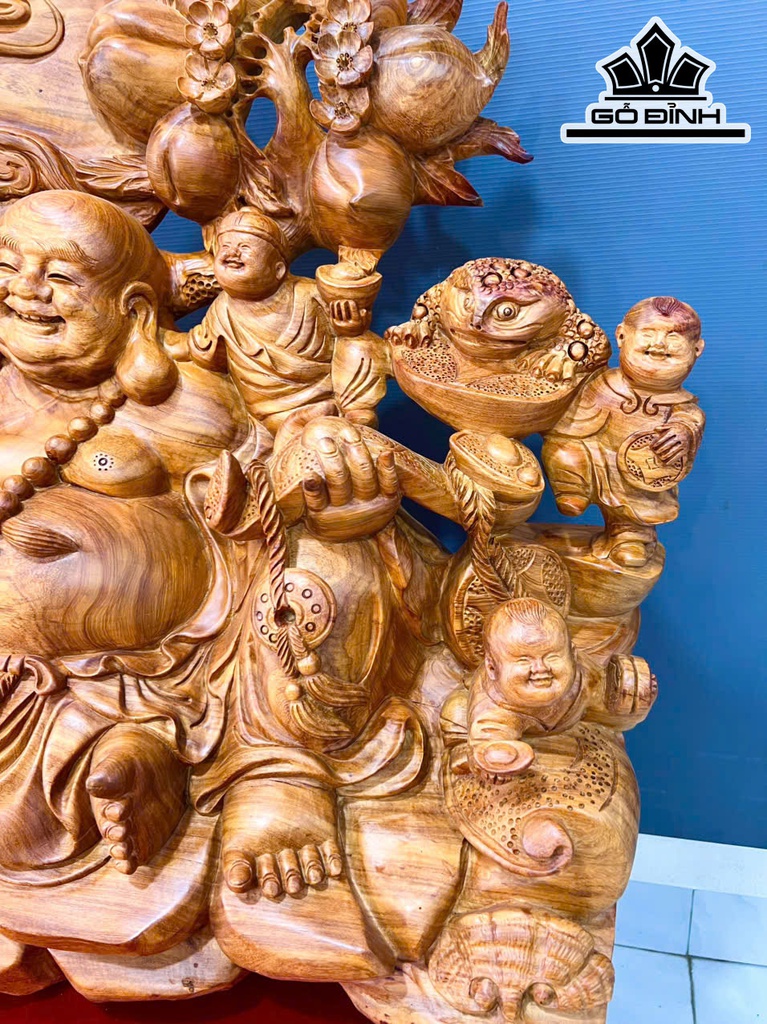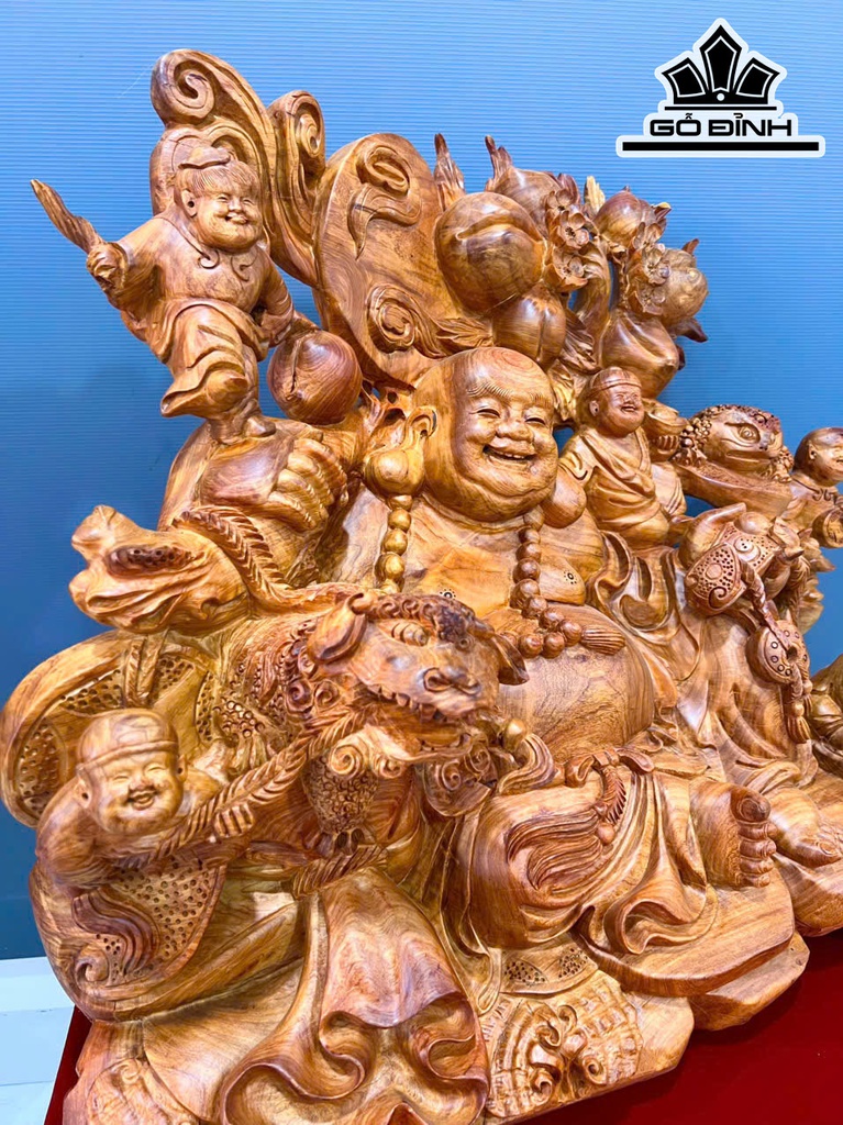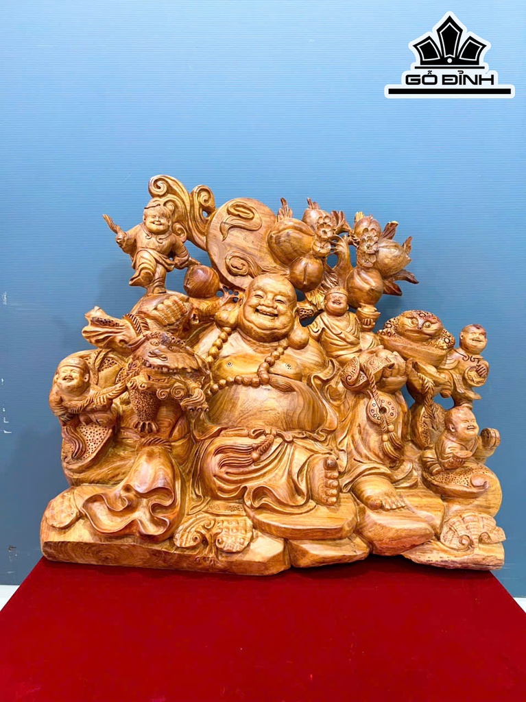 Tượng Phật Di Lặc Ngũ Phúc Gỗ Hương Cao 62 Ngang 76 Sâu 38 (cm)