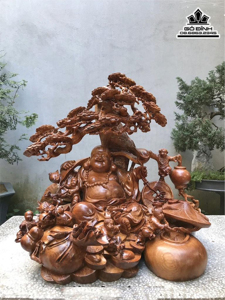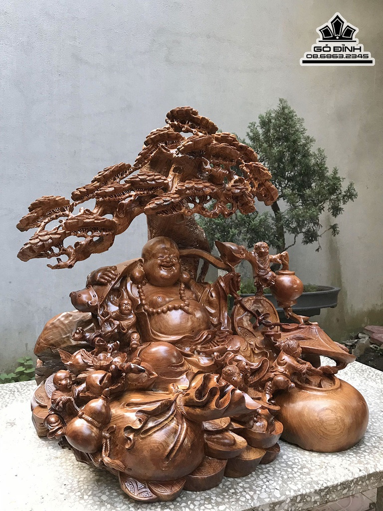 Tượng Phật Di Lặc Ngũ Phúc Gỗ Hương Cao 73 Ngang 75 Sâu 60 (cm)