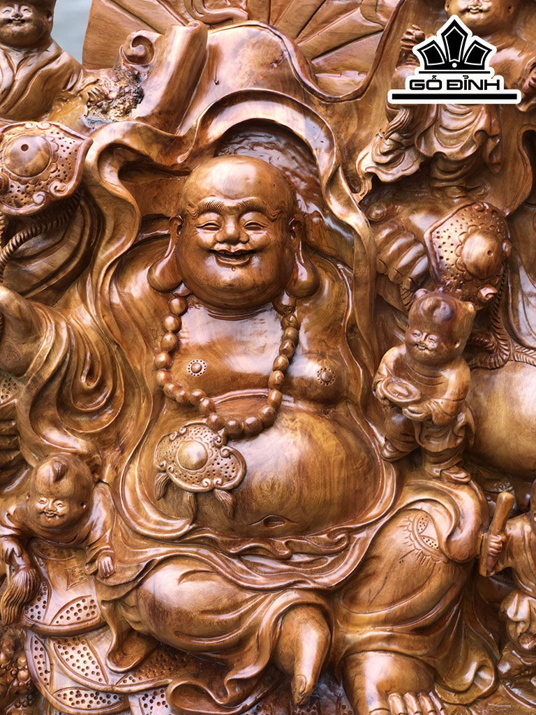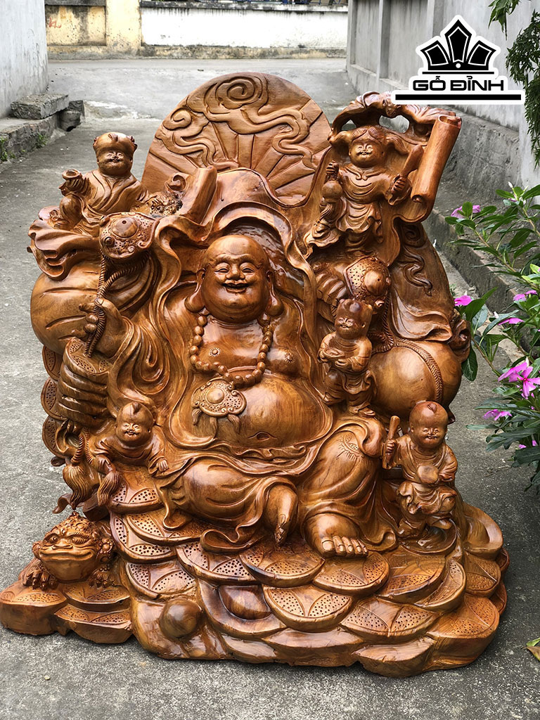 Tượng Phật Di Lặc Ngũ Phúc Gỗ Hương Cao 74 Ngang 70 Sâu 37 (cm)