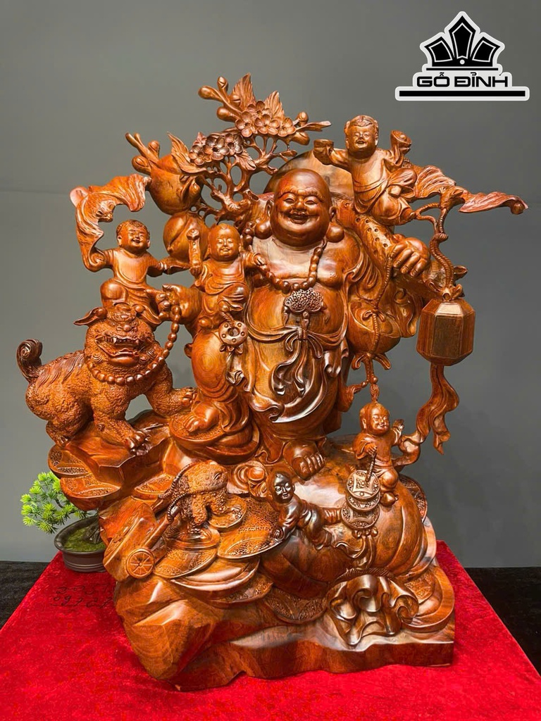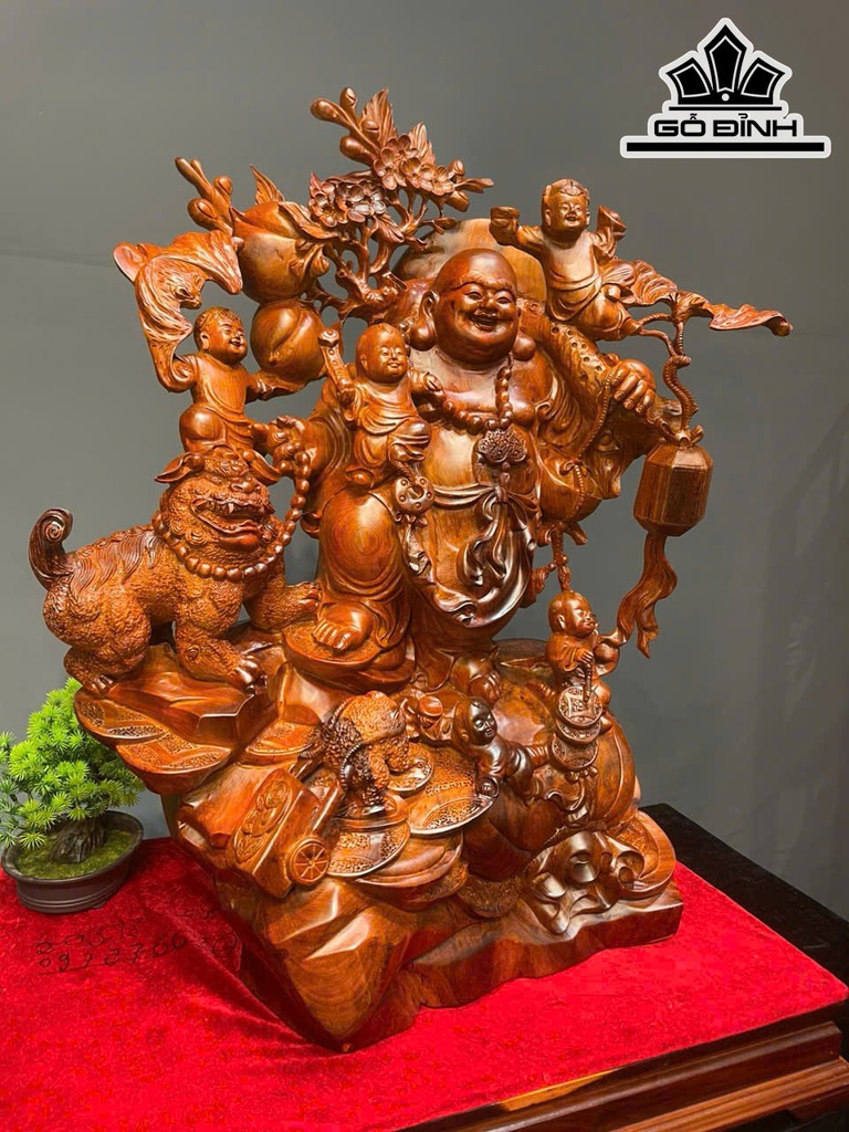 Tượng Phật Di Lặc Ngũ Phúc Gỗ Hương Cao 79 Ngang 59 Sâu 39 (cm)