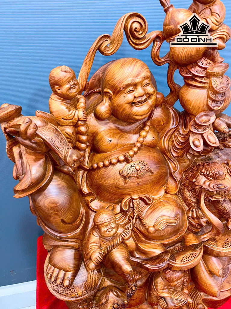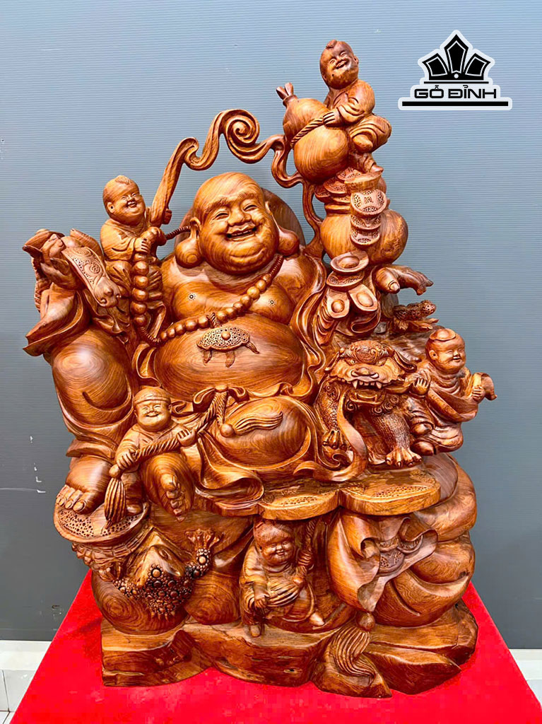 Tượng Phật Di Lặc Ngũ Phúc Gỗ Hương Cao 86 Ngang 58 Sâu 32 (cm)