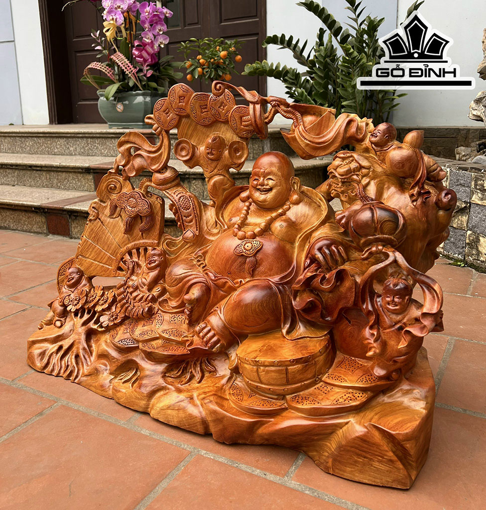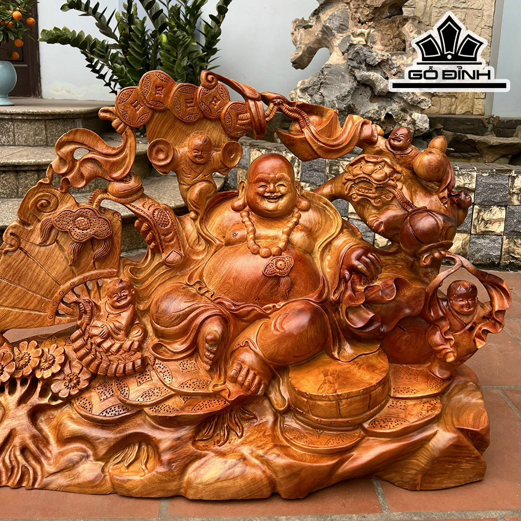 Tượng Phật Di Lặc Ngũ Phúc Gỗ Hương Cao 88 Ngang 61 Sâu 42 (cm)