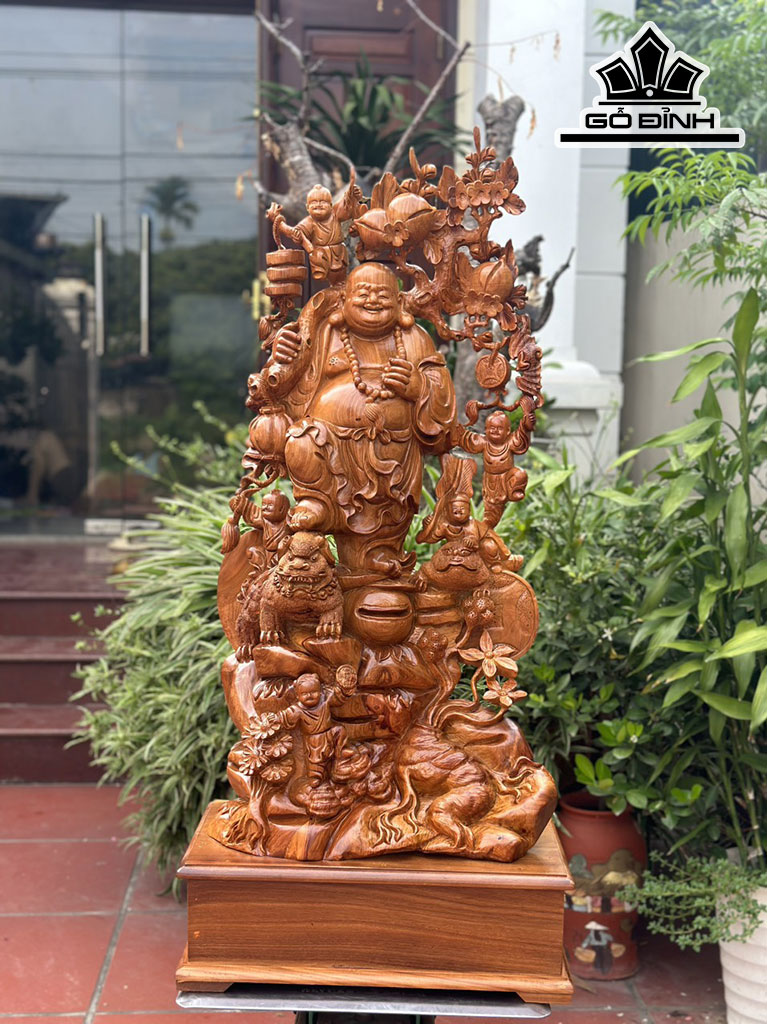 Tượng Phật Di Lặc Ngũ Phúc Gỗ Hương Cao 91 Ngang 45 Sâu 32 (cm)