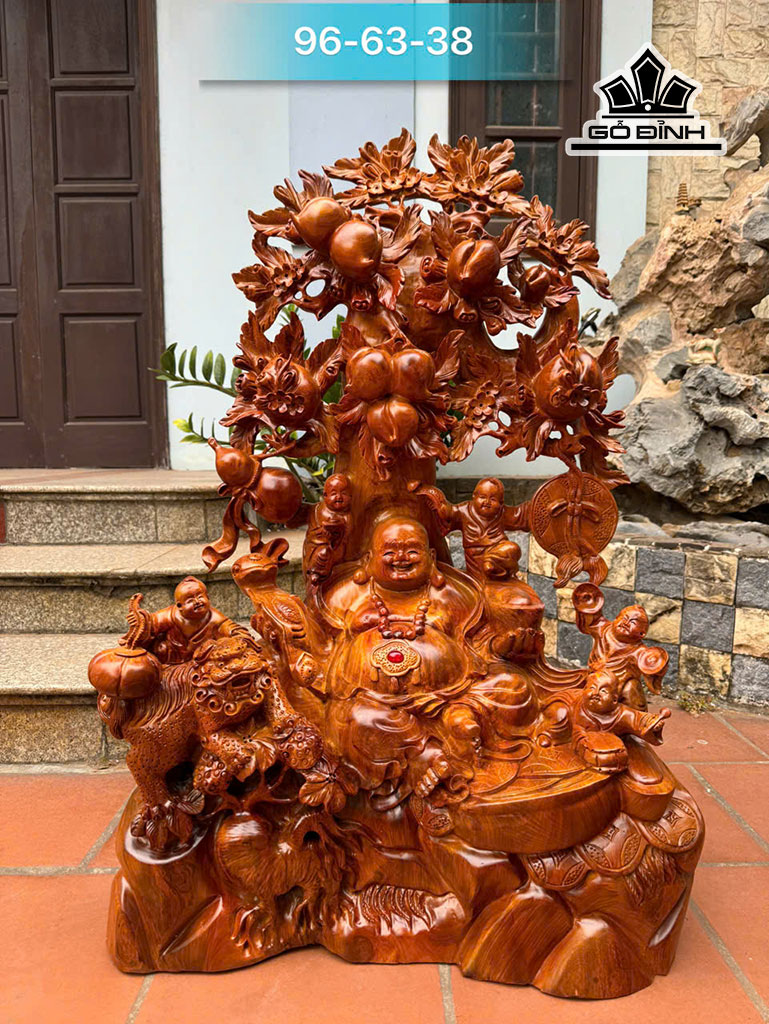 Tượng Phật Di Lặc Ngũ Phúc Gỗ Hương Cao 96 Ngang 63 Sâu 38 (cm)