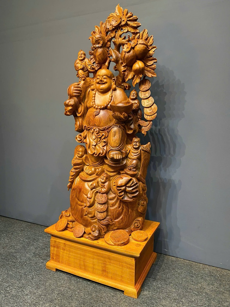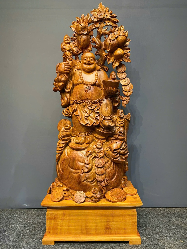 Tượng Phật Di Lặc Ngũ Phúc Gỗ Hương Cao Cả Kỷ 127 Ngang 48 Sâu 32 (cm) - Kỷ Cao 20 (cm)