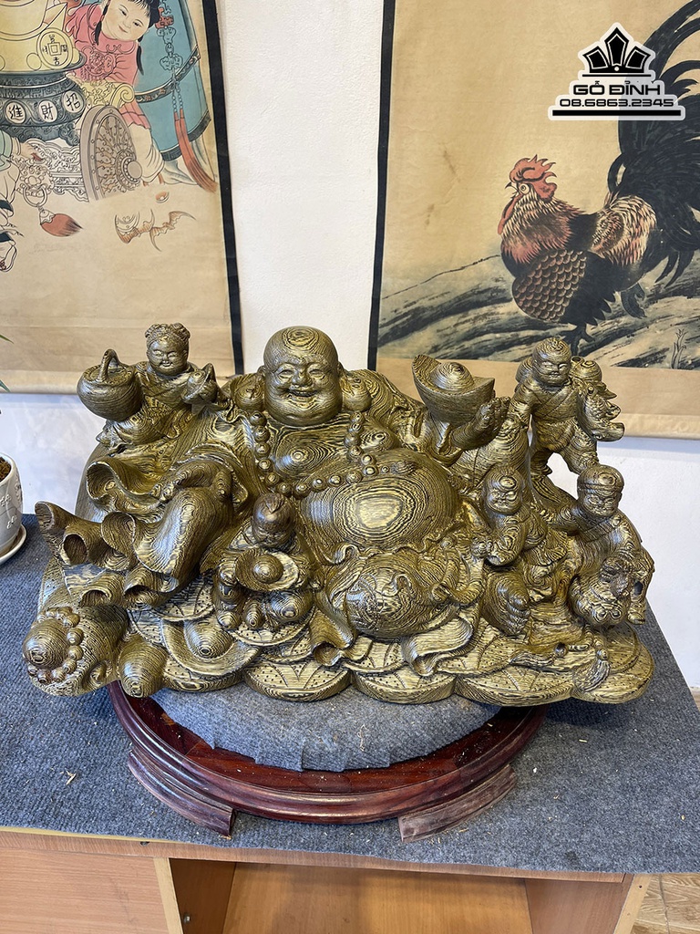 Tượng Phật Di Lặc Ngũ Phúc Gỗ Mun Hoa