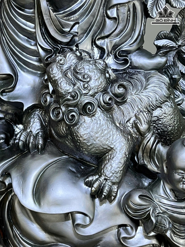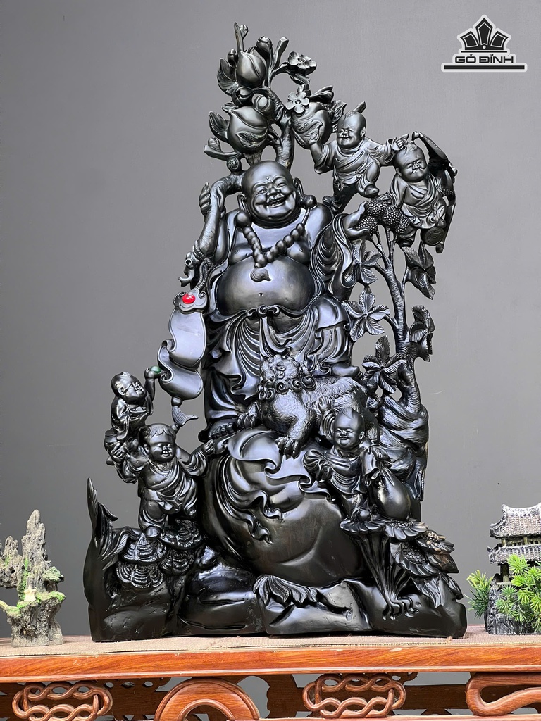 Tượng Phật Di Lặc Ngũ Phúc Gỗ Mun Sừng Cao 80 Ngang 47 Sâu 26 (cm)