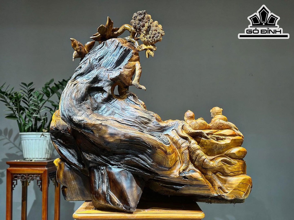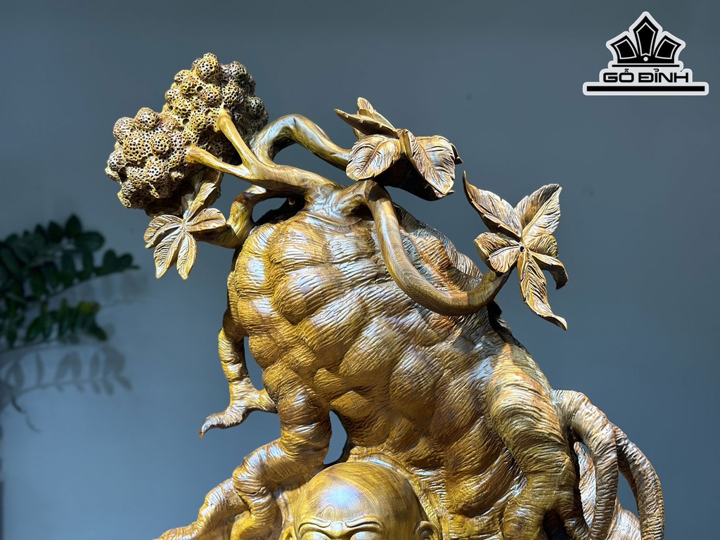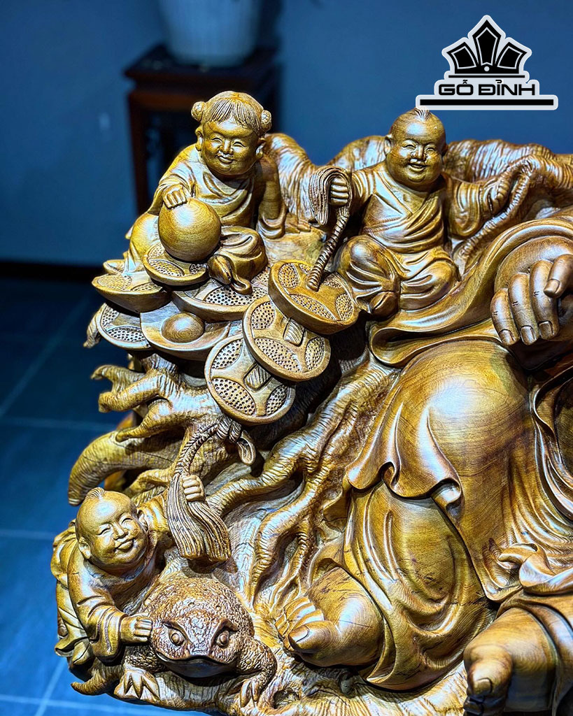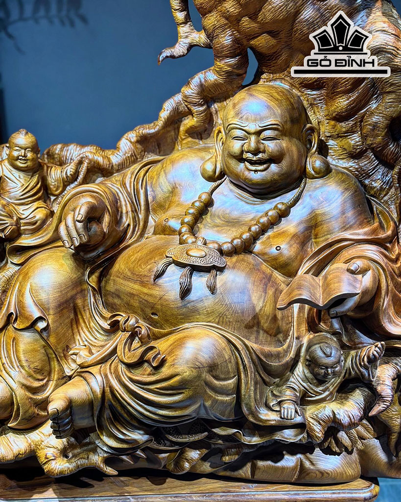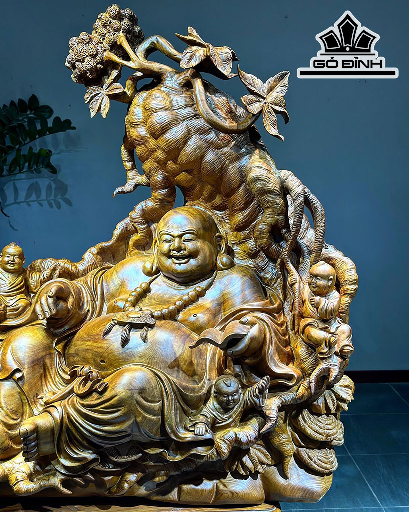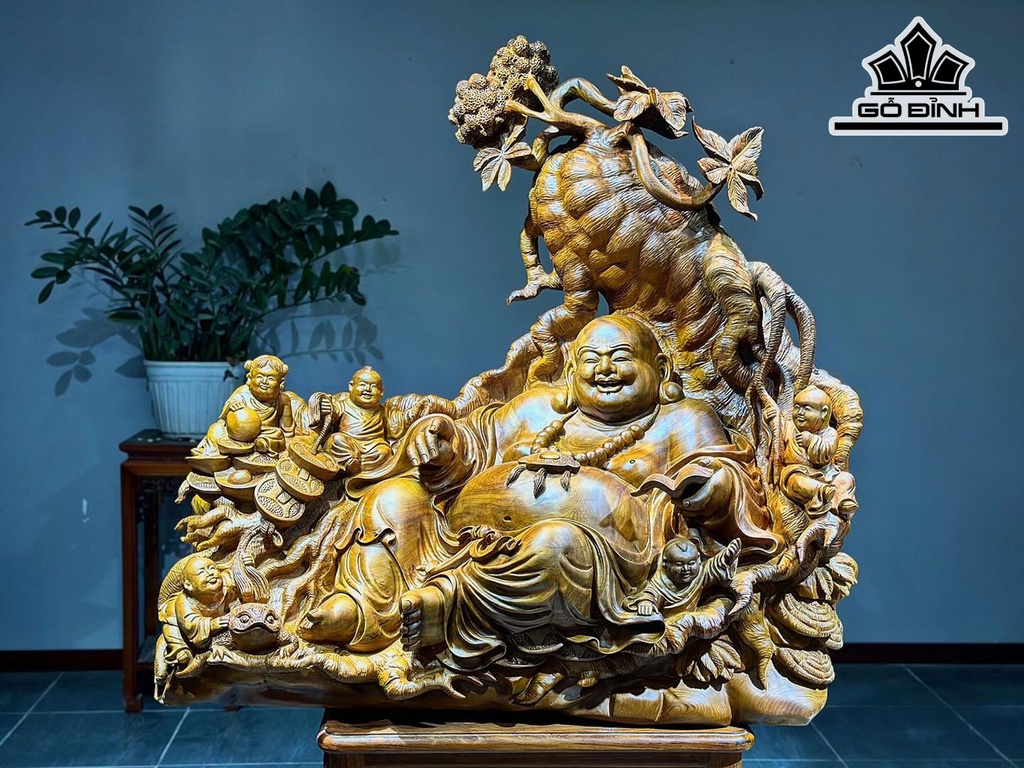 Tượng Phật Di Lặc Ngũ Phúc Gỗ Ngọc Am Cao 100 Ngang 100 Sâu 51 (cm)