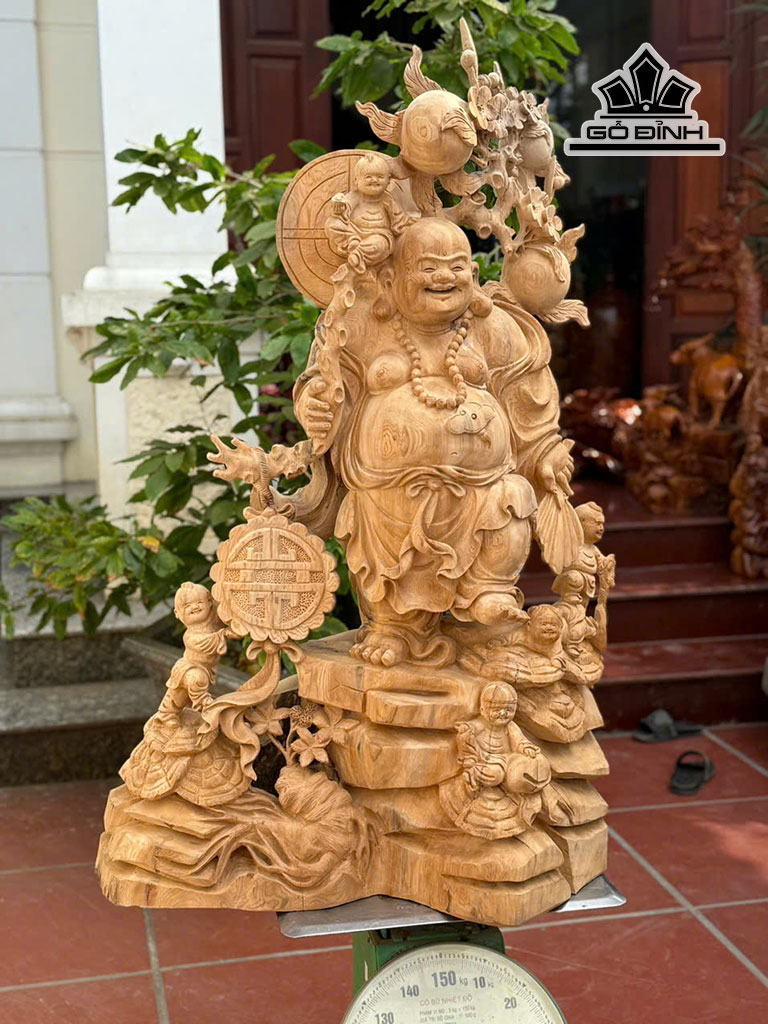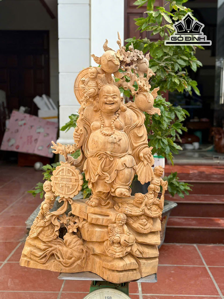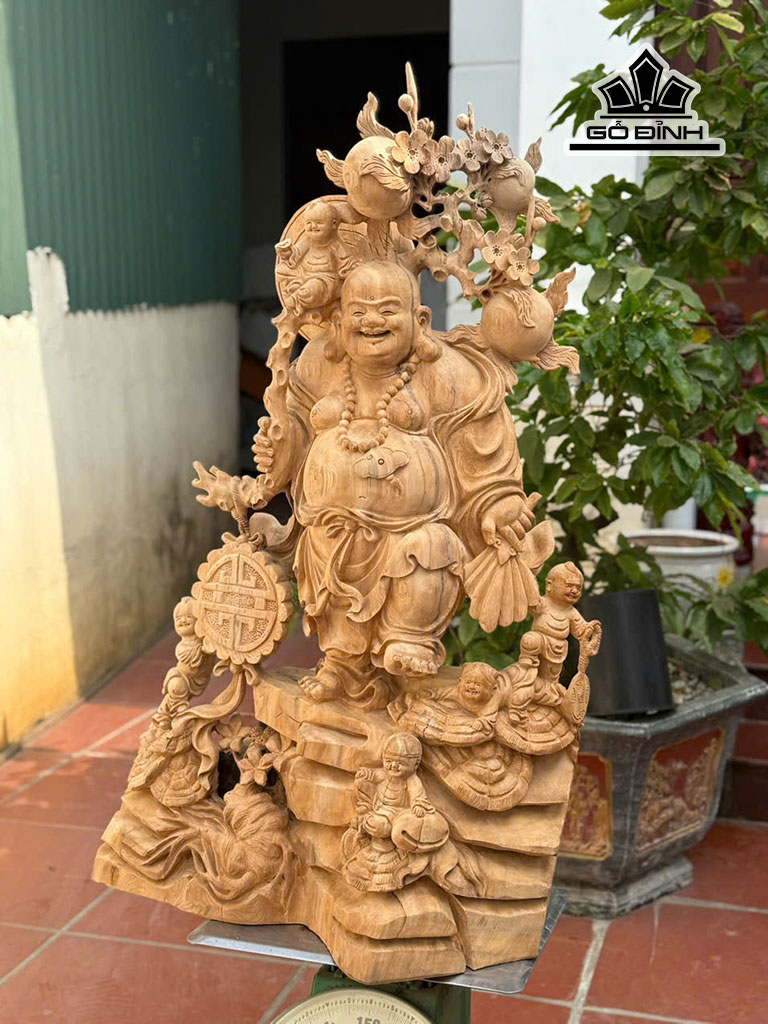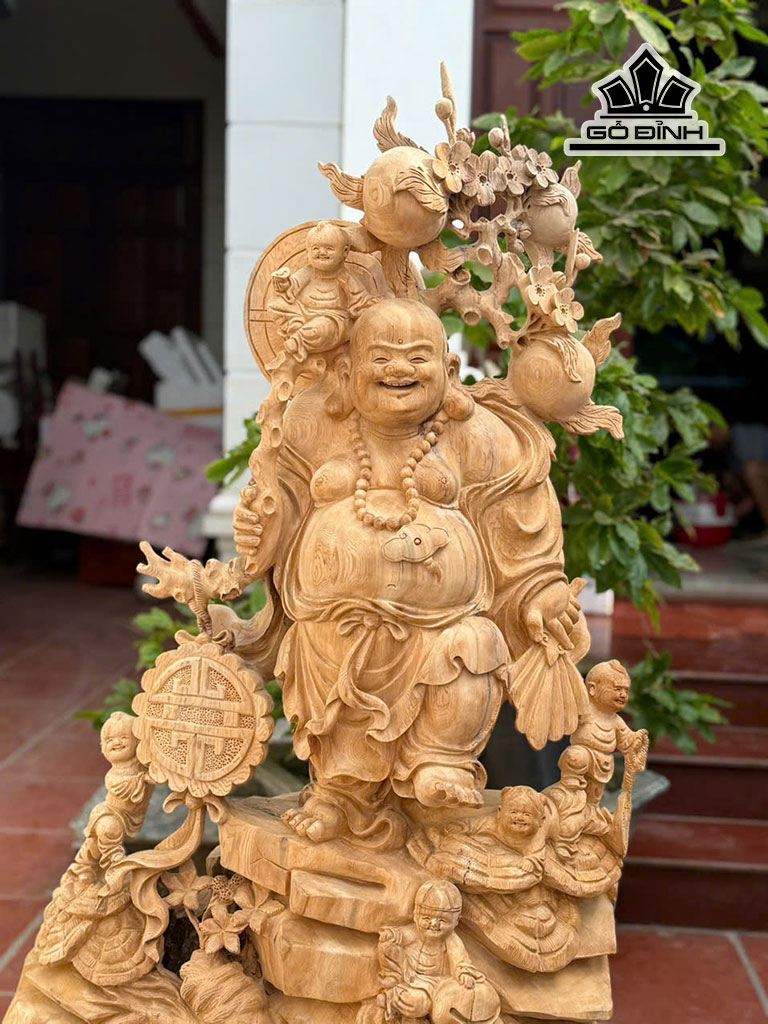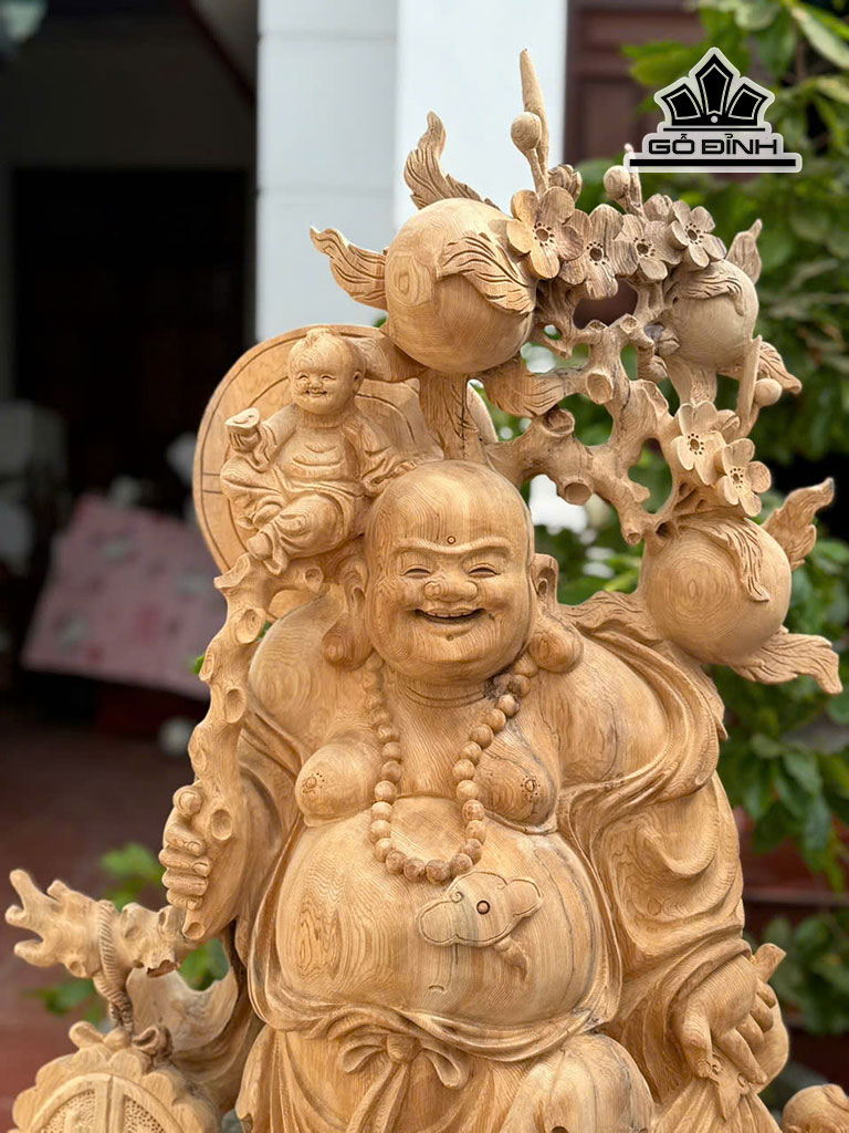Tượng Phật Di Lặc Ngũ Phúc Gỗ Ngọc Am Cao 220 Ngang 68 Sâu 33 (cm)