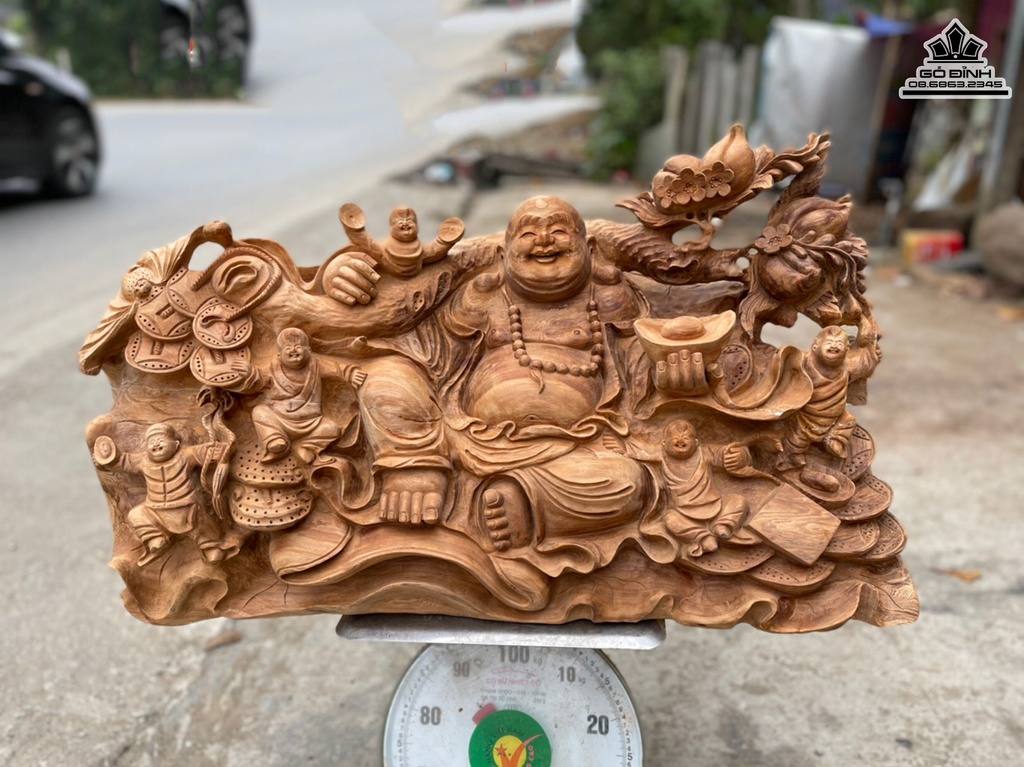 Tượng Phật Di Lặc Ngũ Phúc Gỗ Ngọc Am Cao 41 Ngang 75 Sâu 30 (cm)