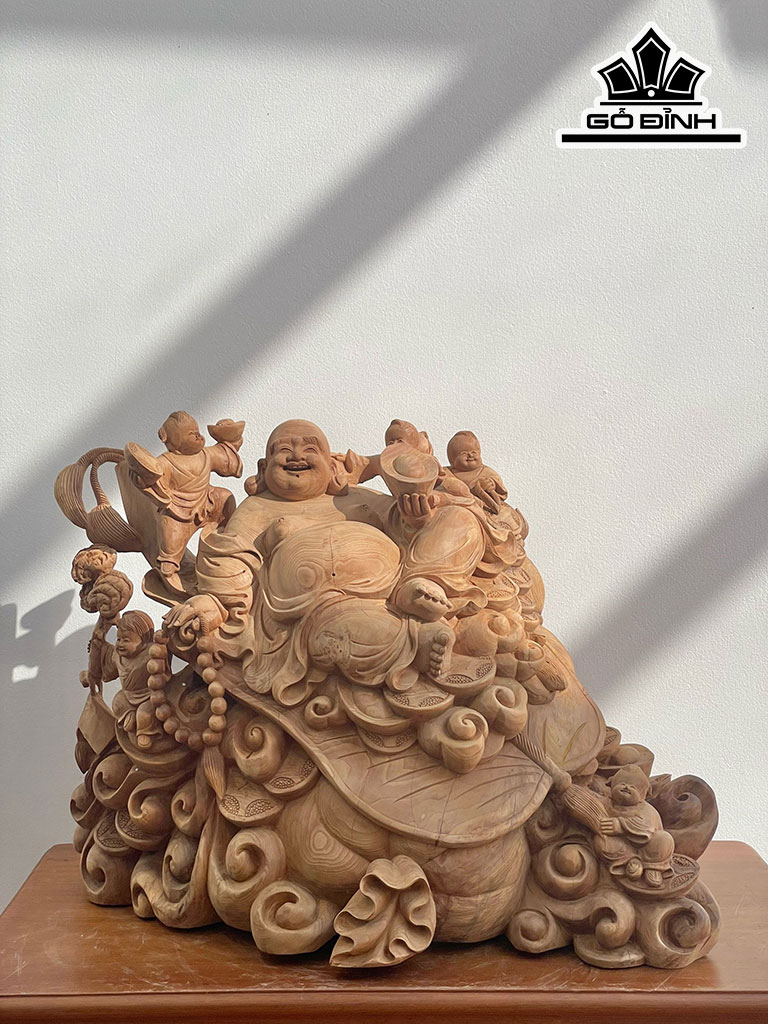 Tượng Phật Di Lặc Ngũ Phúc Gỗ Ngọc Am Cao 45 Ngang 60 Sâu 30 (cm)