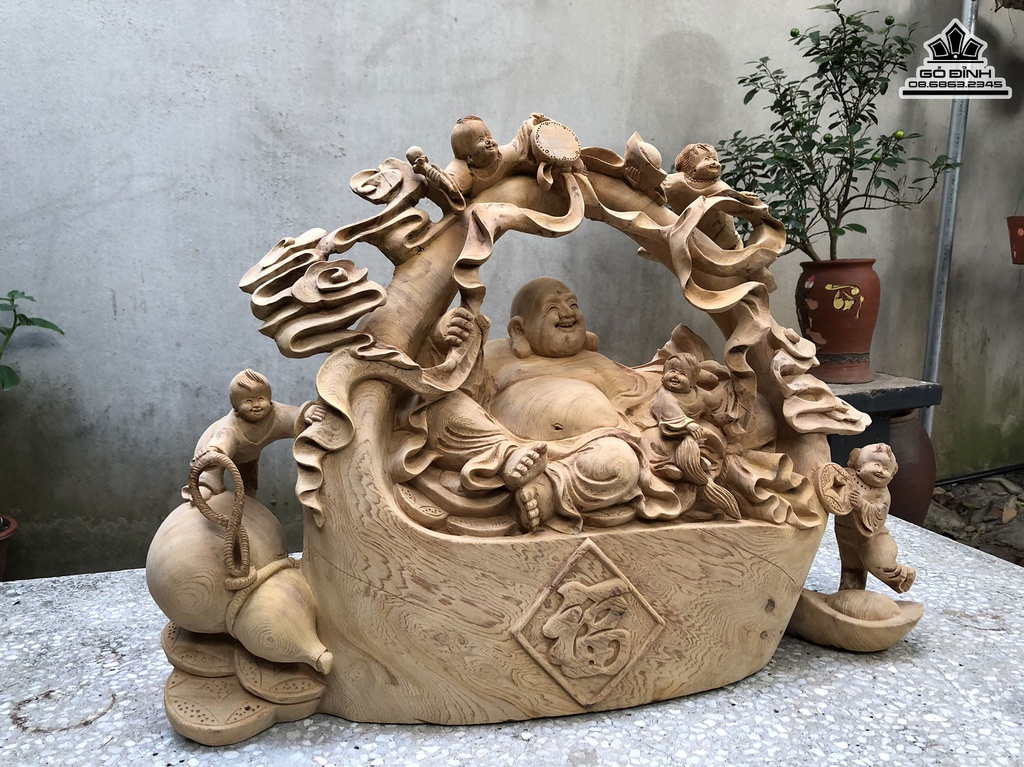 Tượng Phật Di Lặc Ngũ Phúc Gỗ Ngọc Am