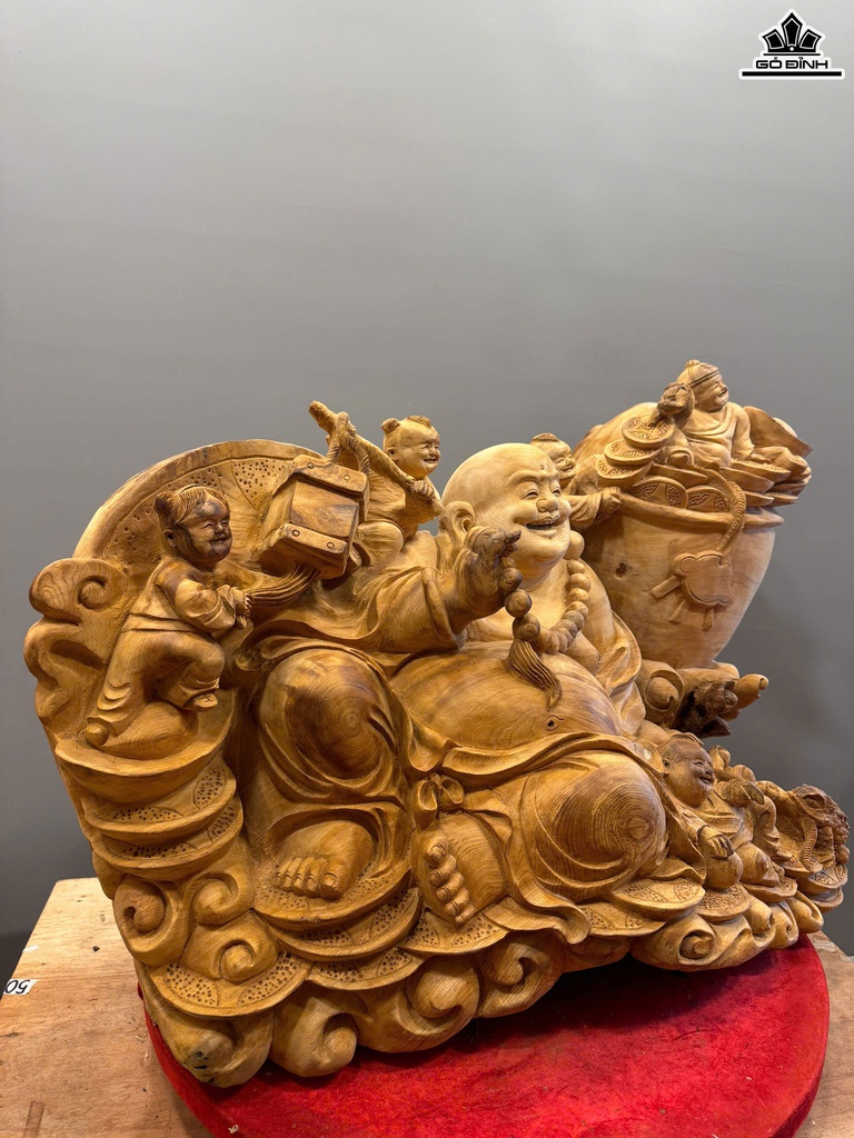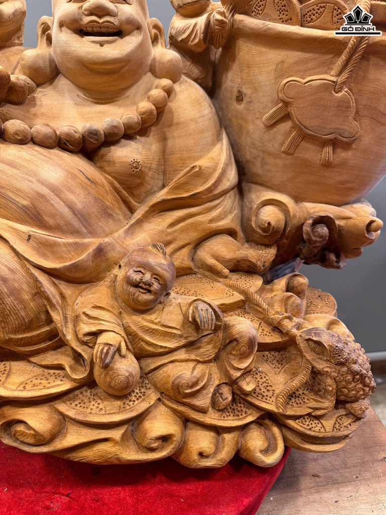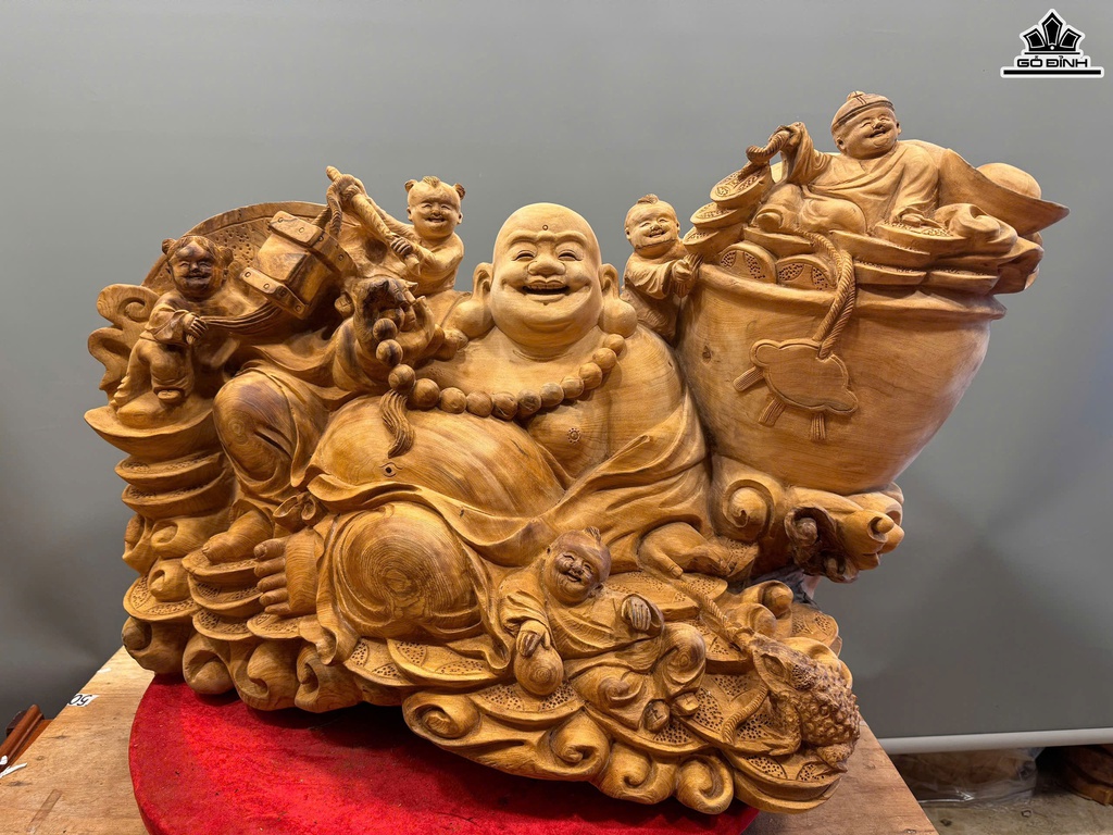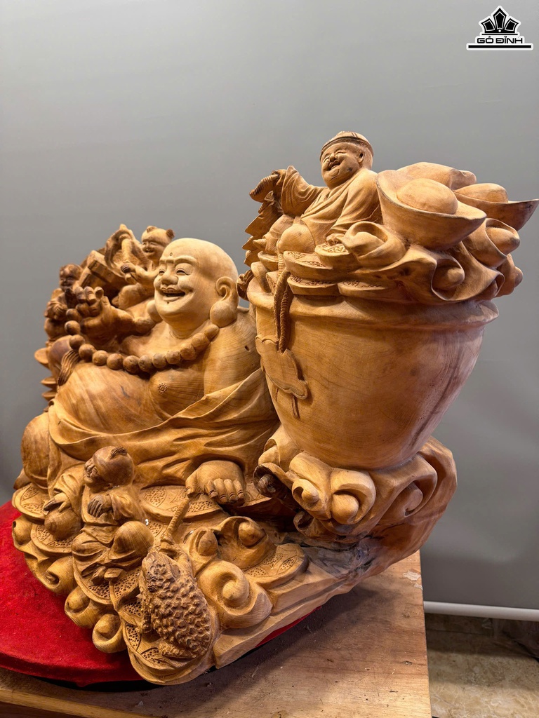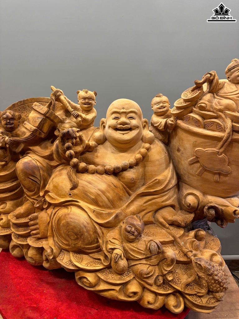 Tượng Phật Di Lặc Ngũ Phúc Gỗ Ngọc Am Cao 50 Ngang 82 Sâu 42 (cm) - 42kg