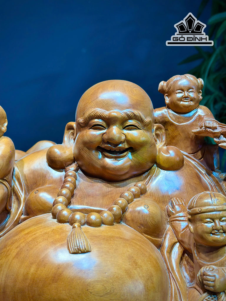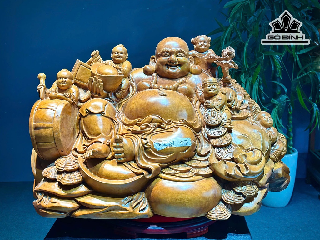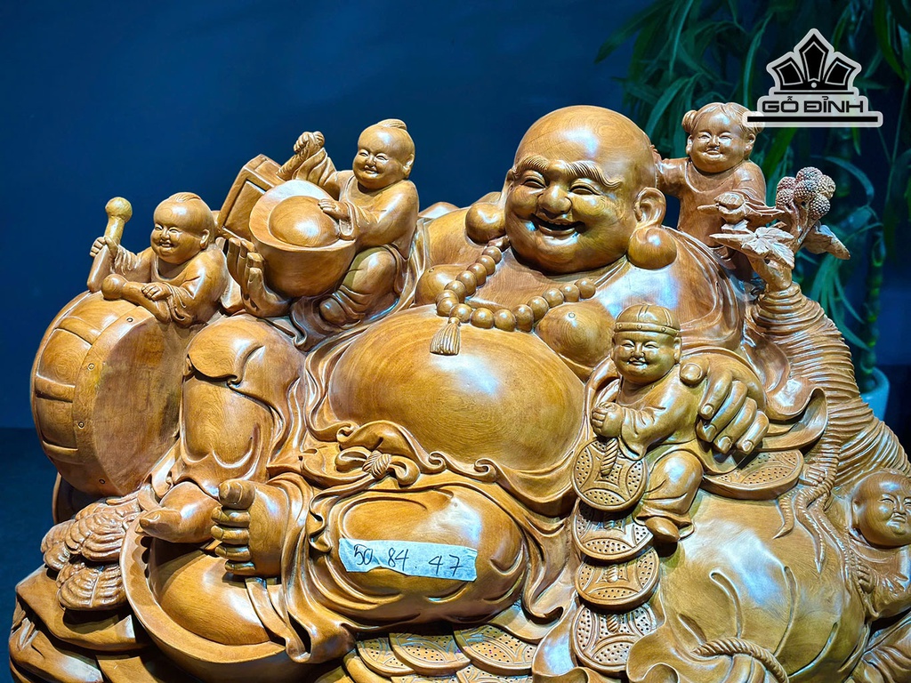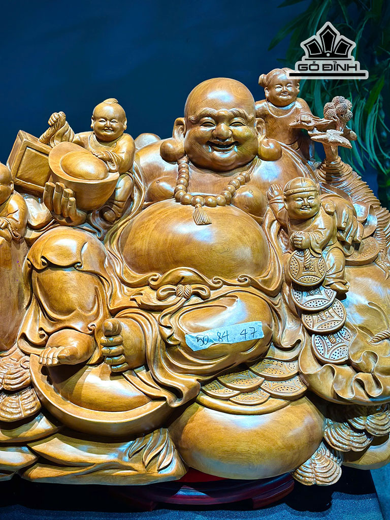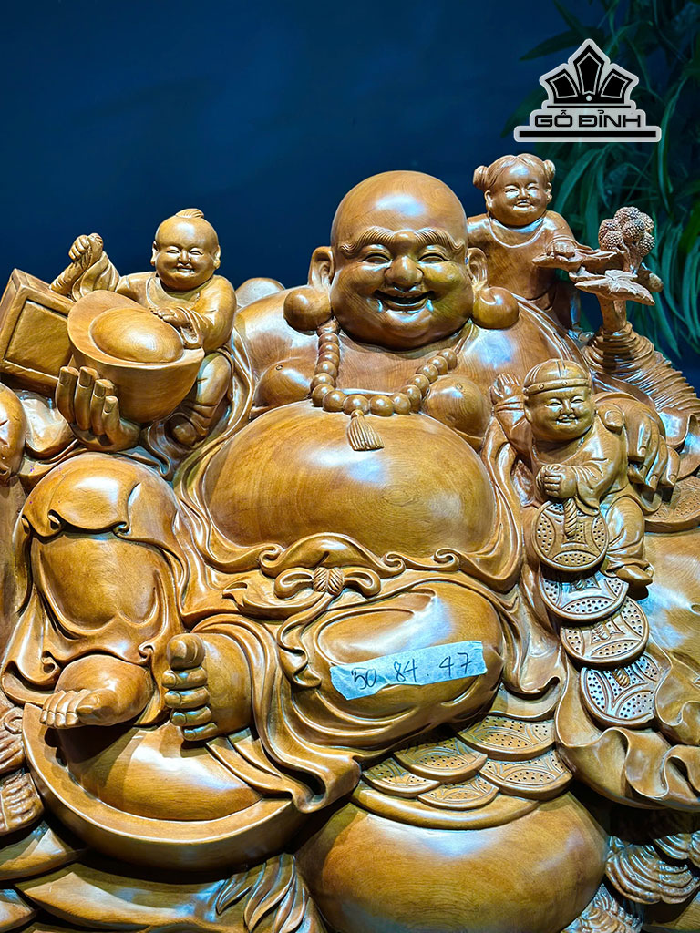Tượng Phật Di Lặc Ngũ Phúc Gỗ Ngọc Am Cao 50 Ngang 84 Sâu 47 (cm)