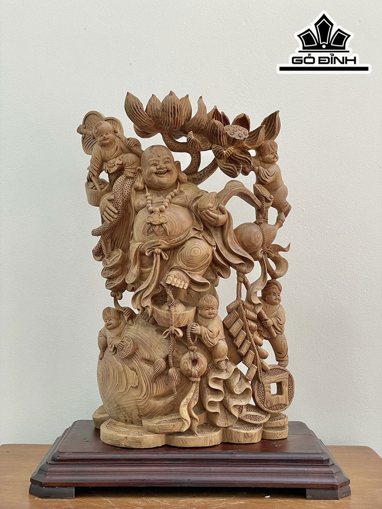 Tượng Phật Di Lặc Ngũ Phúc Gỗ Ngọc Am Cao 60 Ngang 40 Sâu 25 (cm)