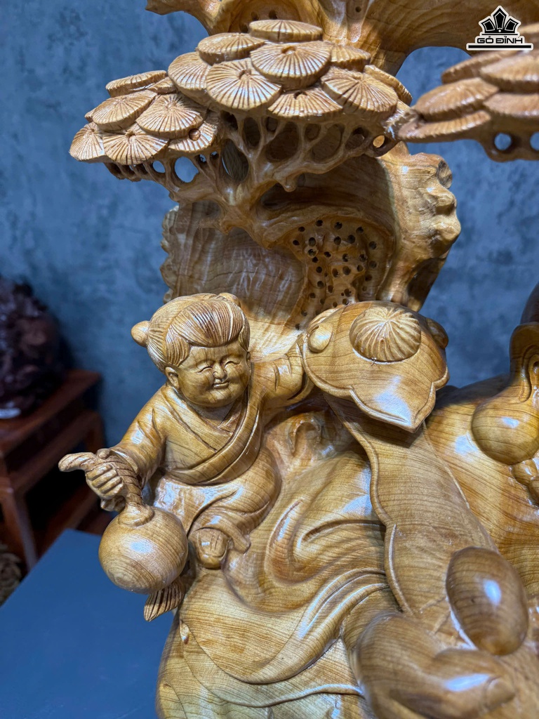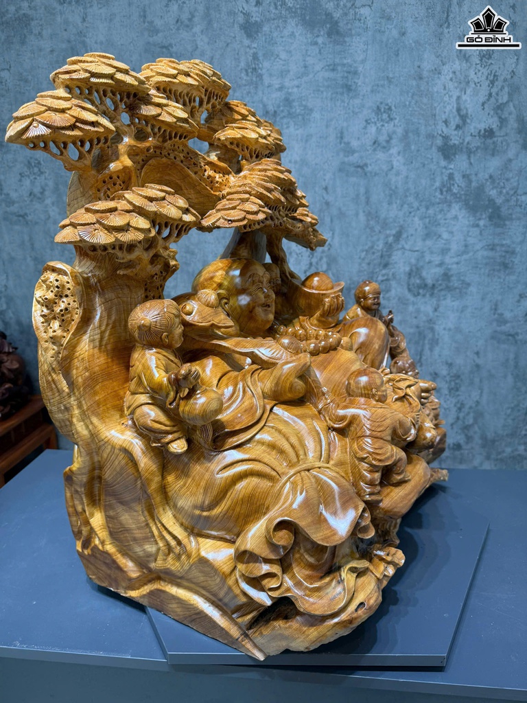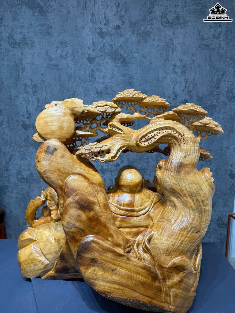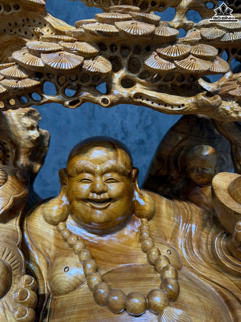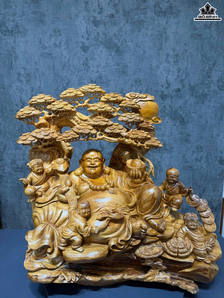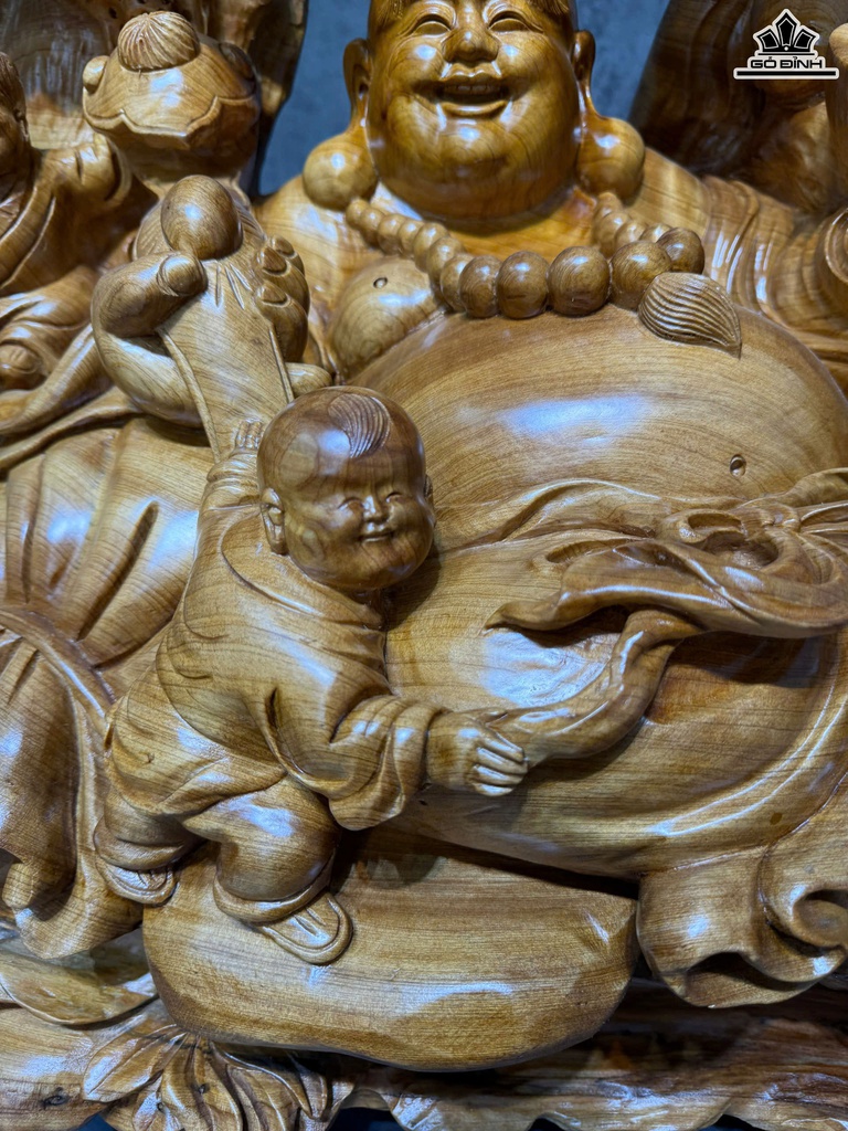 Tượng Phật Di Lặc Ngũ Phúc Gỗ Ngọc Am Cao 75 Ngang 71 Sâu 51 (cm)