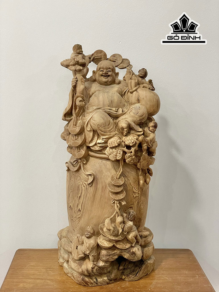 Tượng Phật Di Lặc Ngũ Phúc Gỗ Ngọc Am Cao 85 Ngang 38 Sâu 36 (cm)