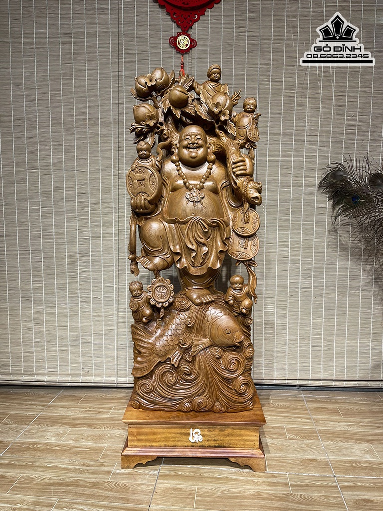 Tượng Phật Di Lặc Ngũ Phúc Gỗ Ngọc Am Cao Cả Kỷ 118 Ngang 40 Sâu 18 (cm)