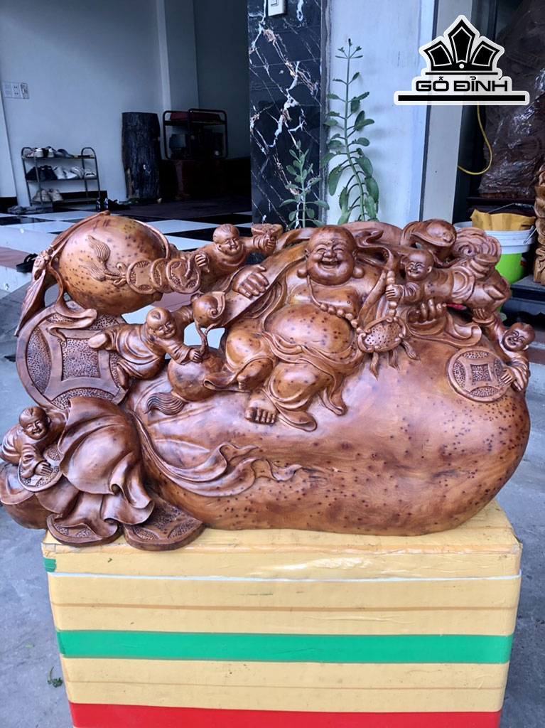 Tượng Phật Di Lặc Ngũ Phúc Gỗ Nu Ngọc Am Cao 36 Ngang 70 Sâu 20 (cm)