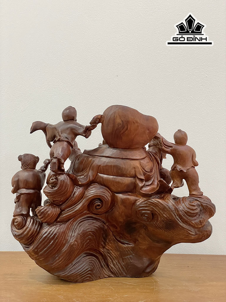Tượng Phật Di Lặc Ngũ Phúc Gỗ Nu Ngọc Am Cao 37 Ngang 40 Sâu 30 (cm)