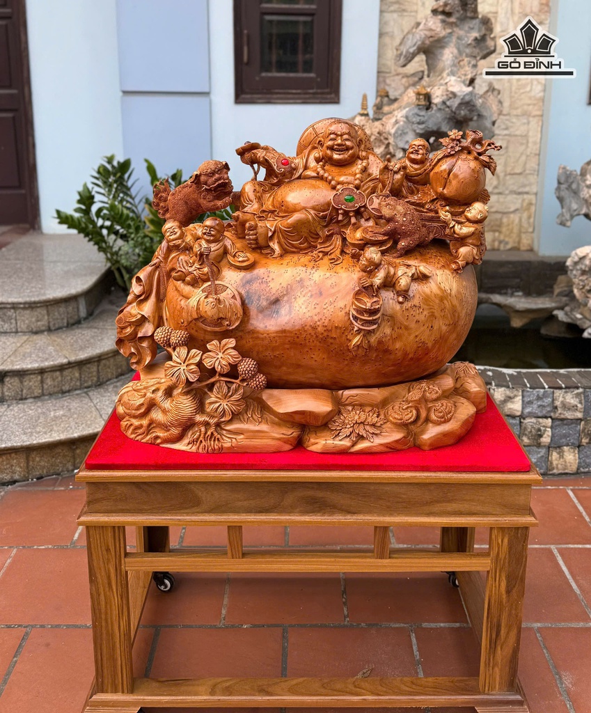 Tượng Phật Di Lặc Ngũ Phúc Gỗ Nu Ngọc Am Cao 64 Ngang 82 Sâu 45 (cm)