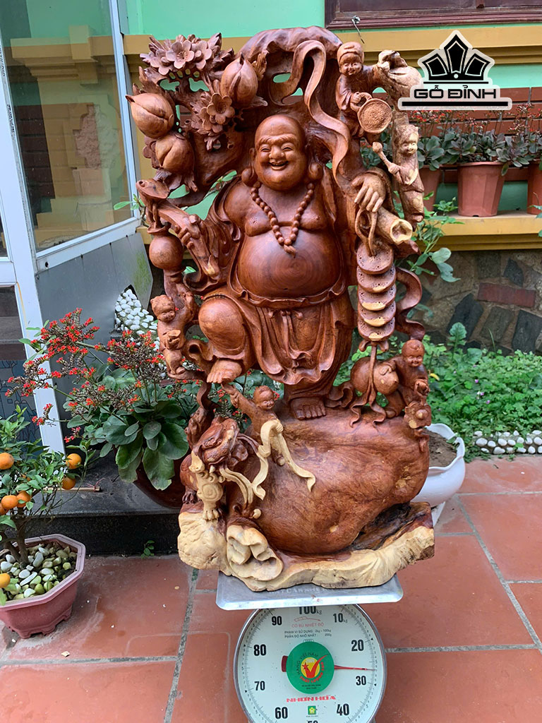 Tượng Phật Di Lặc Ngũ Phúc Gỗ Sụn Hương Cao 92 Ngang 46 Sâu 20 (cm)