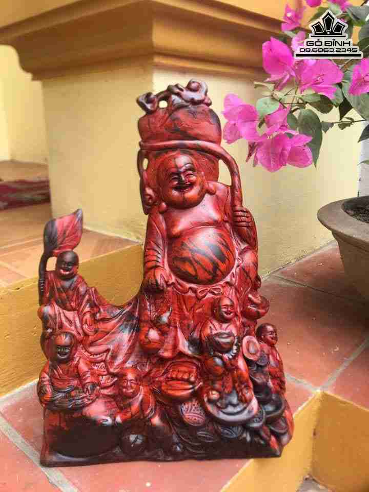 Tượng Phật Di Lặc Ngũ Phúc Gỗ Trắc Cao 38 Ngang 28 Sâu 10 (cm)