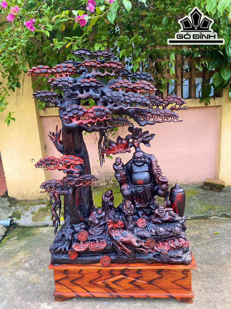 Tượng Phật Di Lặc Ngũ Phúc Gỗ Trắc Cao 123 Ngang 84 Sâu 40 (cm)