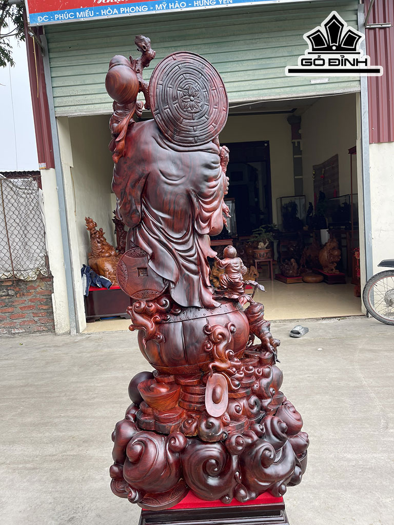 Tượng Phật Di Lặc Ngũ Phúc Gỗ Trắc Cao 125 Ngang 58 Sâu 40 (cm)