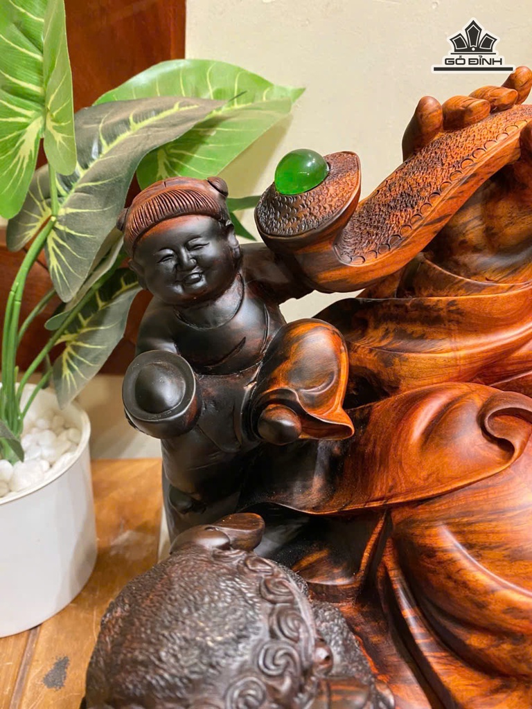 Tượng Phật Di Lặc Ngũ Phúc Gỗ Trắc Cao 36 Ngang 79 Sâu 38 (cm)