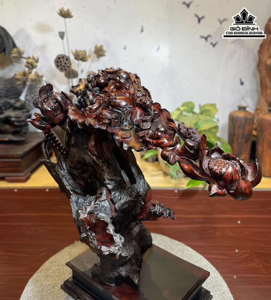 Tượng Phật Di Lặc Ngũ Phúc Gỗ Trắc