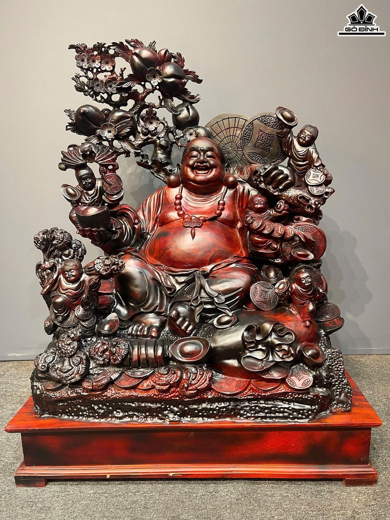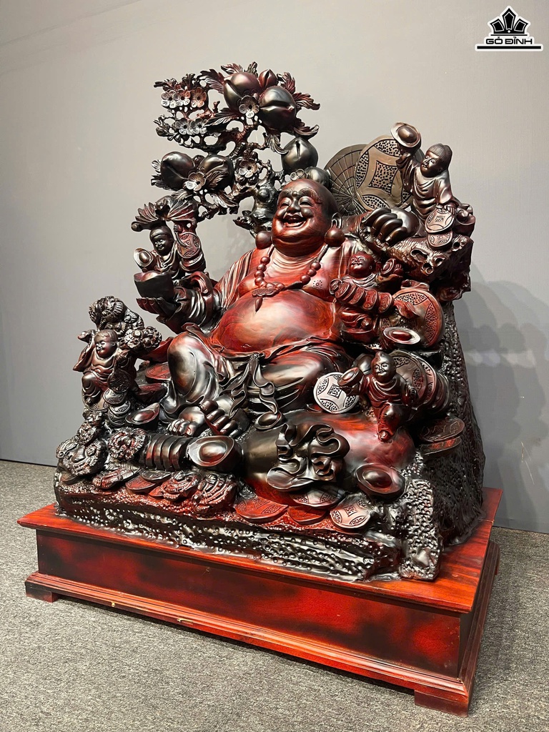 Tượng Phật Di Lặc Ngũ Phúc Gỗ Trắc Cao Cả Kỷ 105 Ngang 80 Sâu 48 (cm) - Kỷ Cao 15 (cm)
