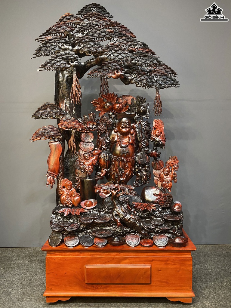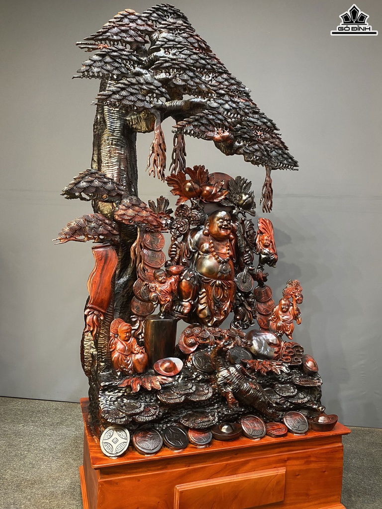 Tượng Phật Di Lặc Ngũ Phúc Gỗ Trắc Cao Cả Kỷ 203 Ngang 106 Sâu 54 (cm) - Kỷ Cao 38 cm)